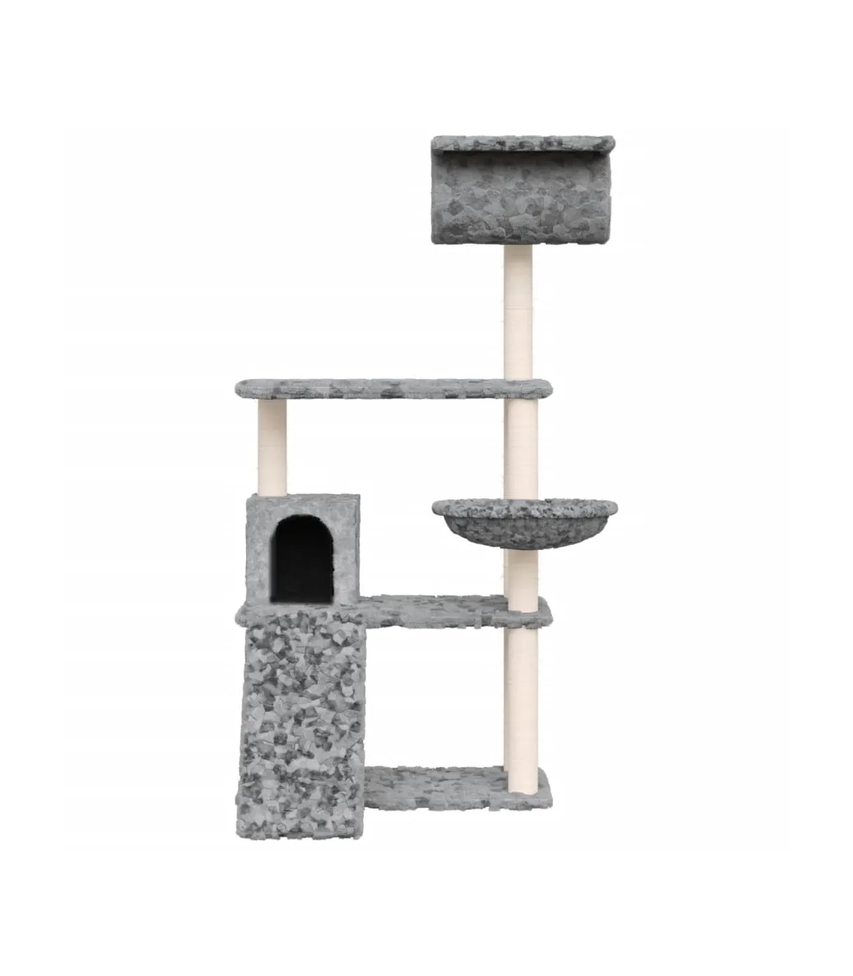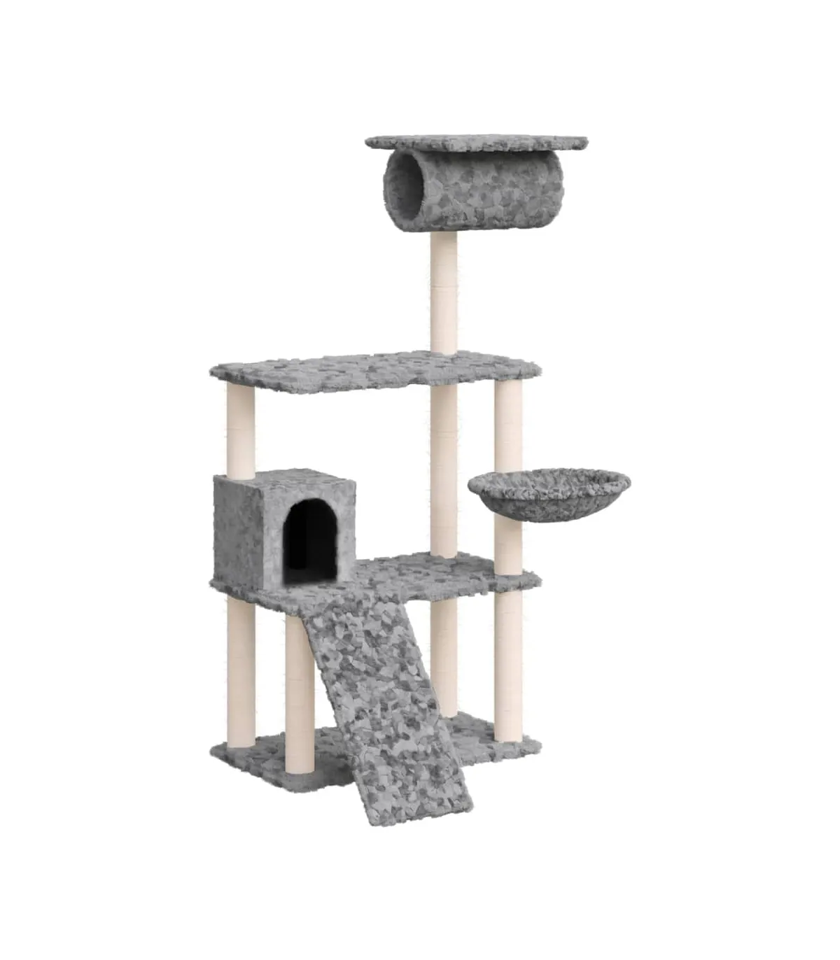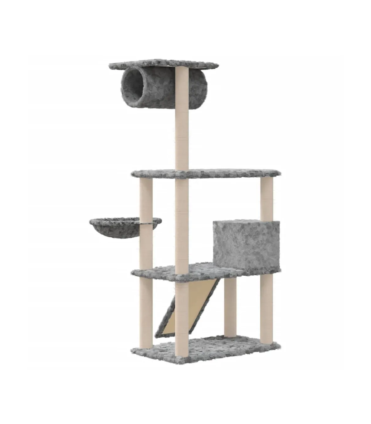 - Material: Engineered wood, plush, sisal