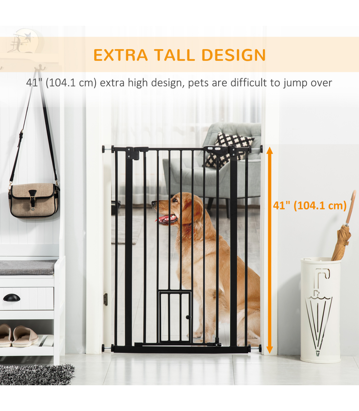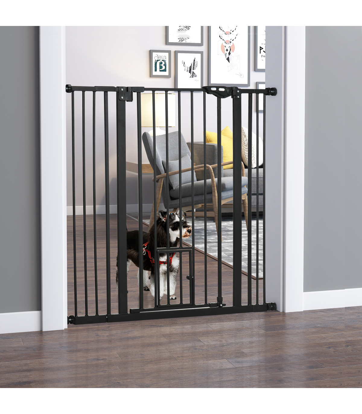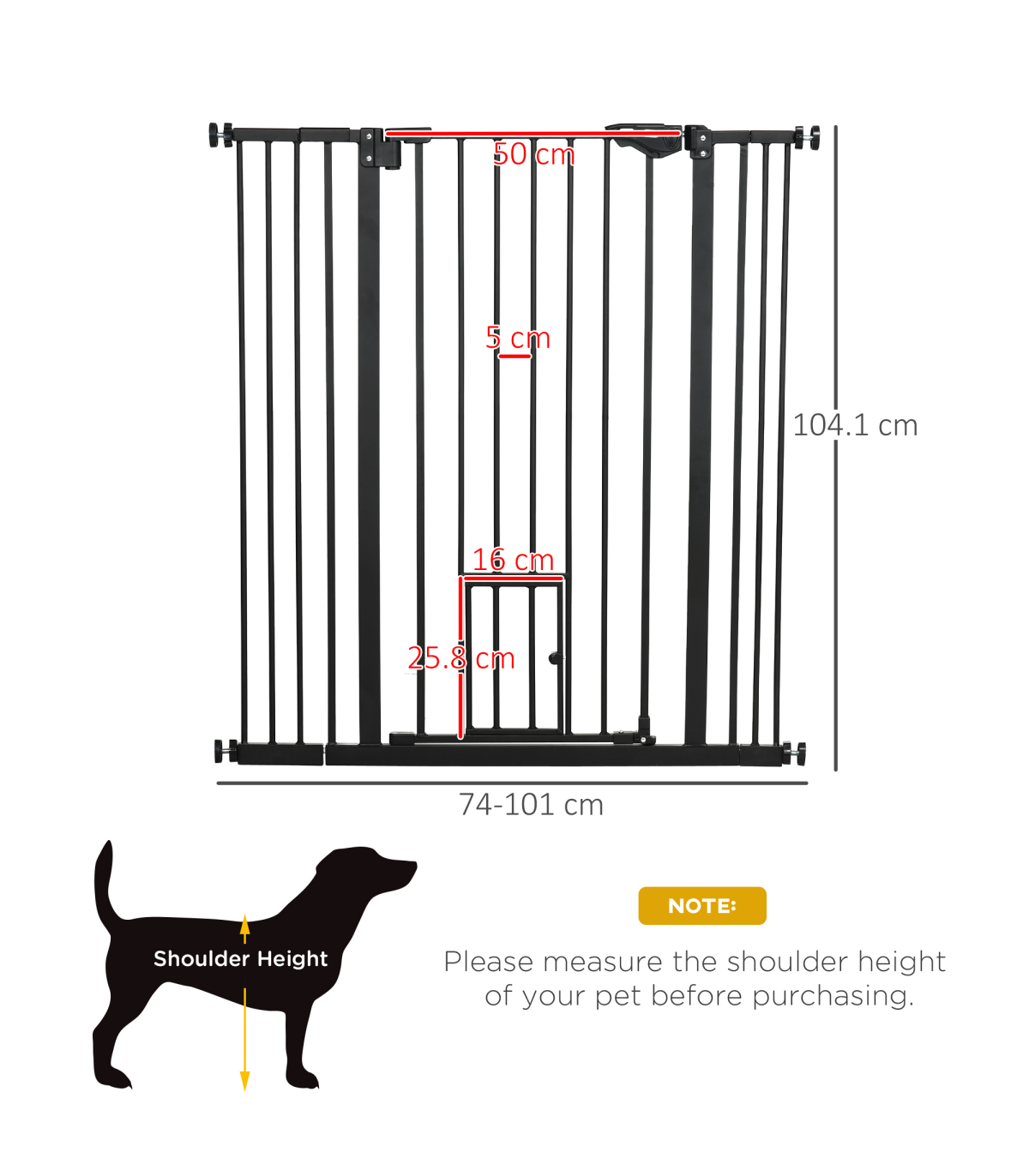 - PawHut Extra Tall Dog Gate with Cat Door Auto Close for Stairs 74-101 cm Wide