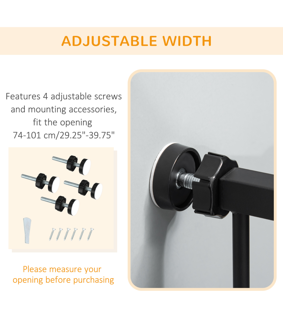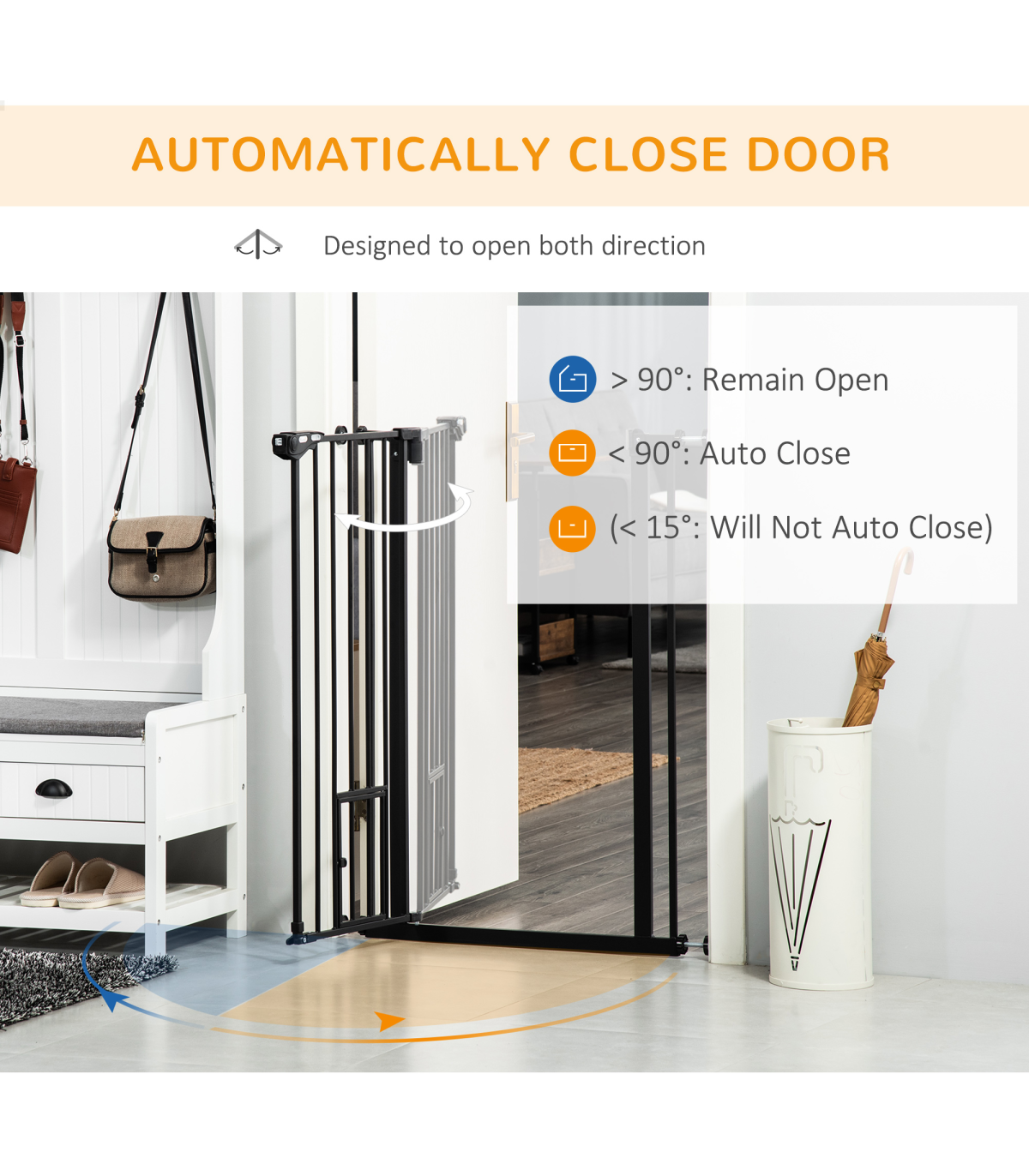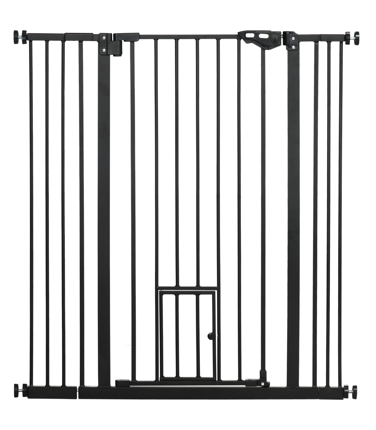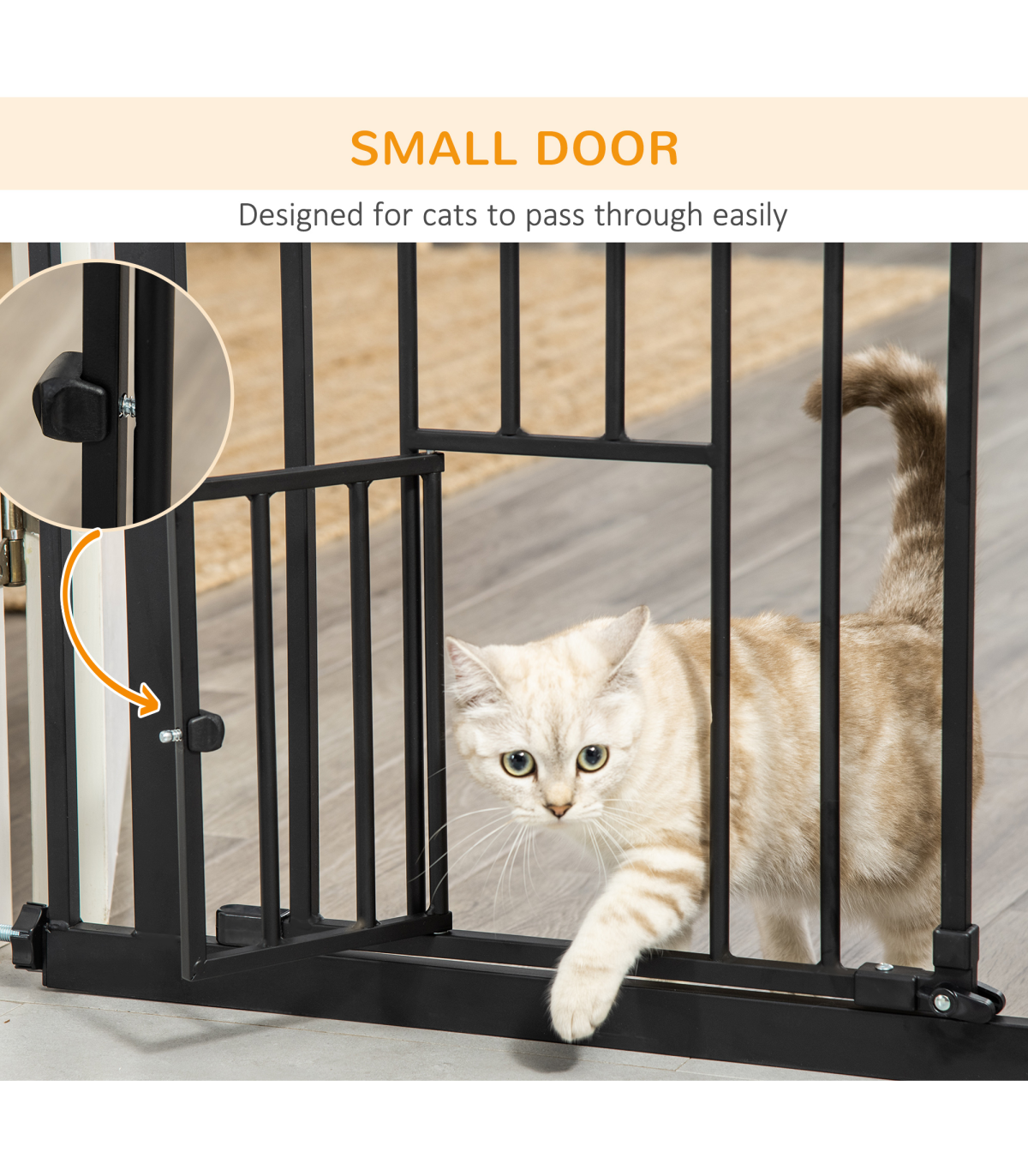 - PawHut Extra Tall Dog Gate with Cat Door Auto Close for Stairs 74-101 cm Wide