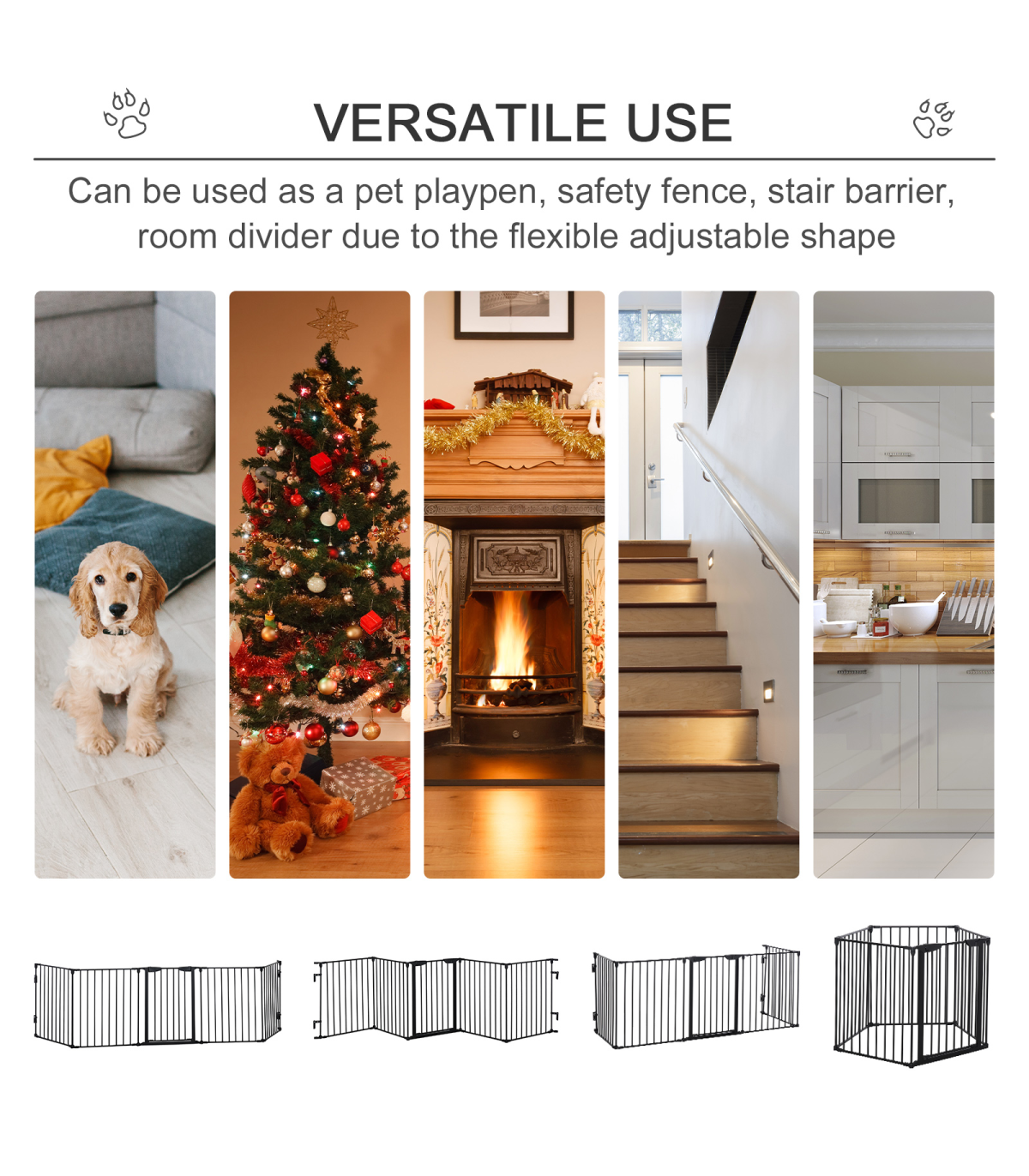 Pet Gate 5-Panel Dog Playpen for Indoor Stair Barrier W/ Walk Through Door Black