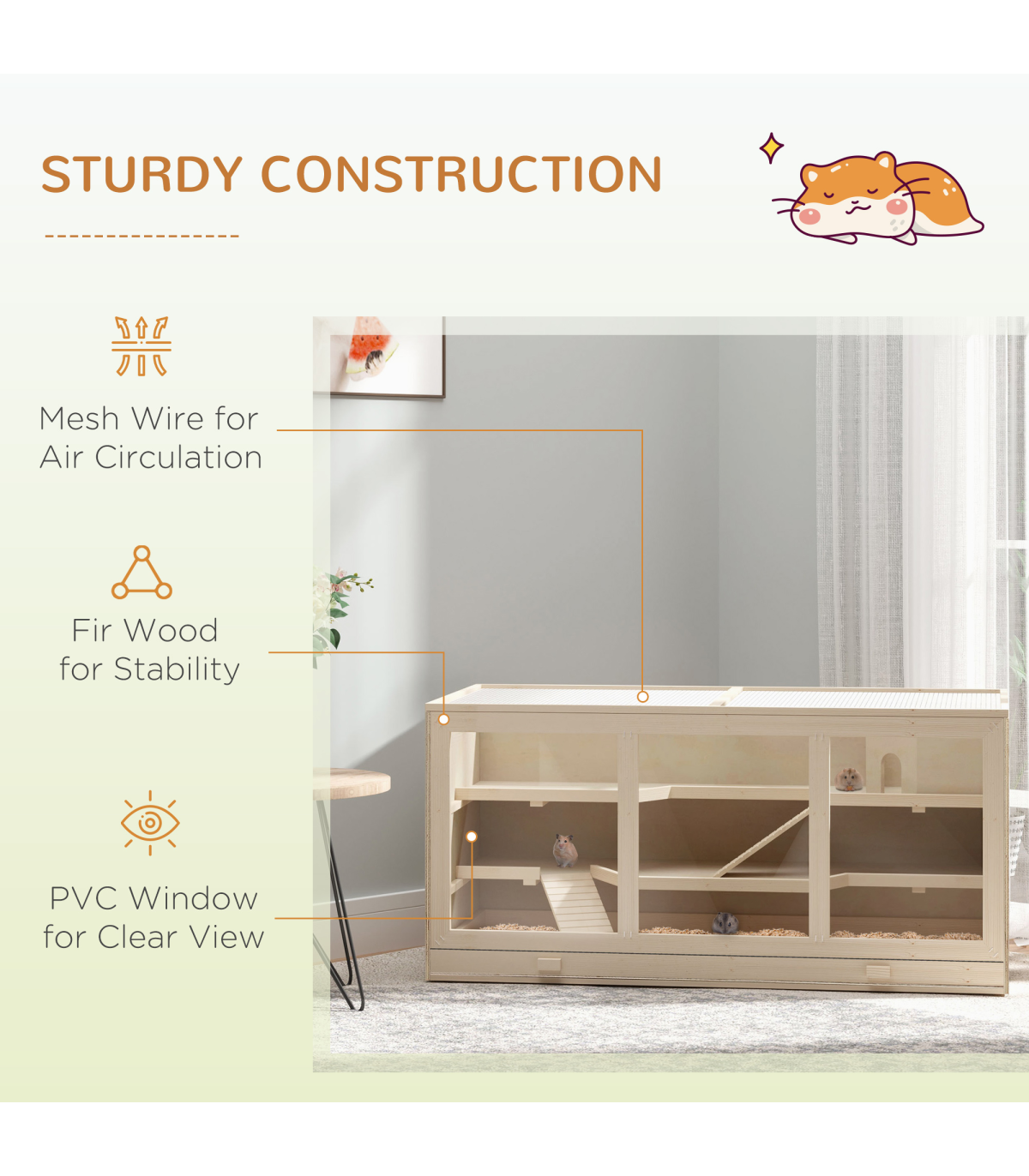 Here we have the PawHut gerbil cage for your little friend. With high quality and large space, perfect living home and exercise area combined in one, this dwarf hamster cage is suitable for hamsters, guinea pigs and other small animals. Robust wire net and sustainable wood structure in superior strength for durable use. Waterproof and easily clean tray comes with PVC window and solid wooden construction. Also, the large top door can be opened within 180-degree angle, also can be adjusted from 30 to 60 degrees. You can place it anywhere and your little hamsters will have an instant home. It will provide safe, dry and warm hiding place for your pets!