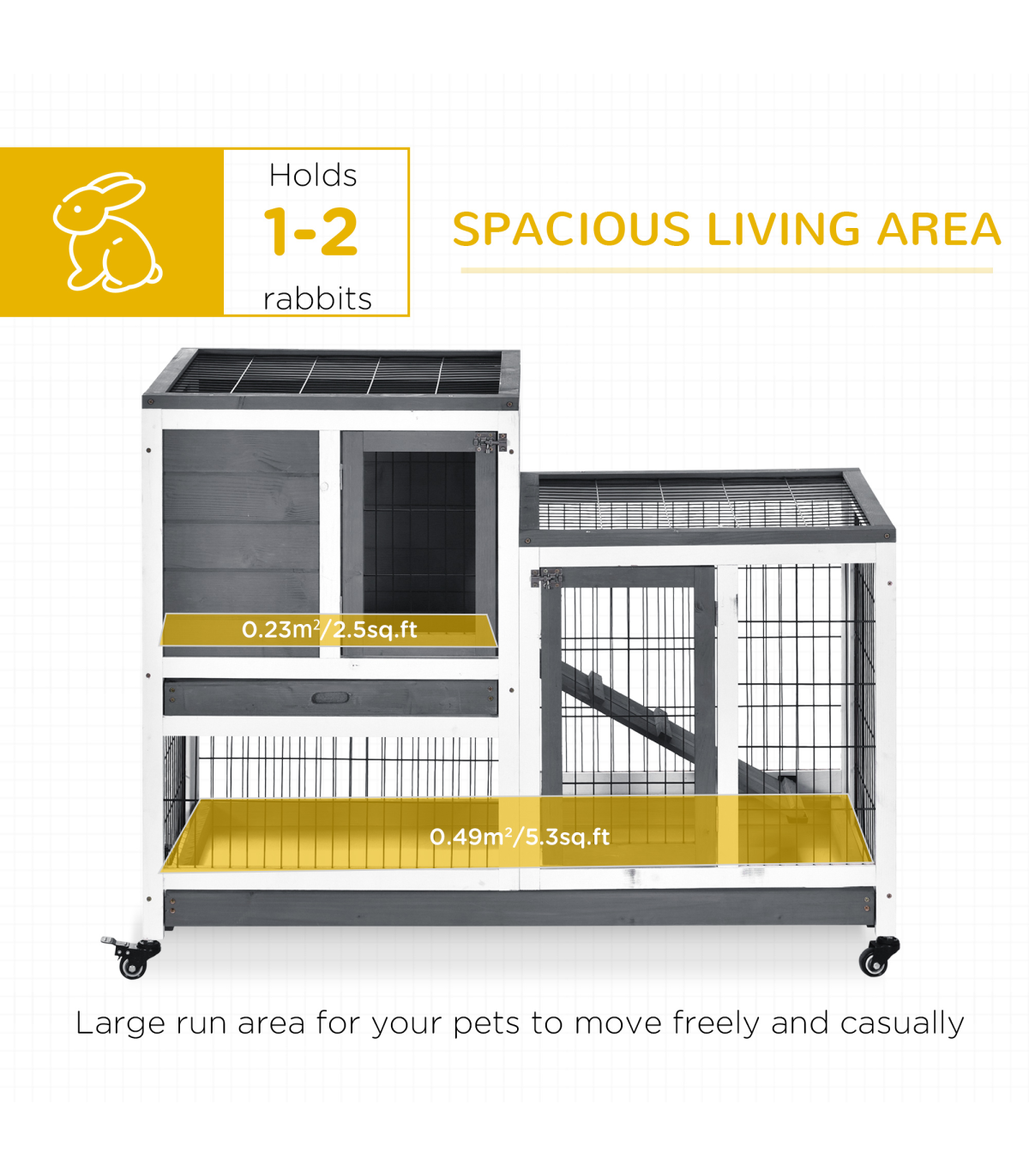 Wooden Rabbit Hutch Bunny Guinea Pigs House Cage Wheels Indoor 110 x 50 x 86cm