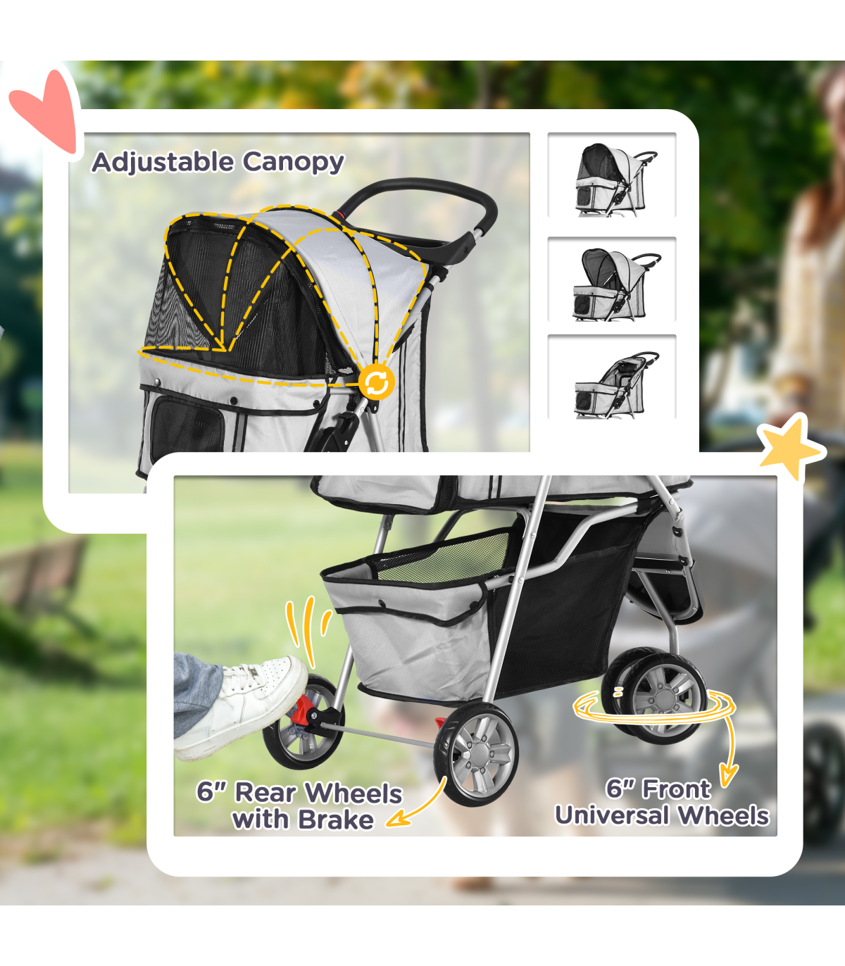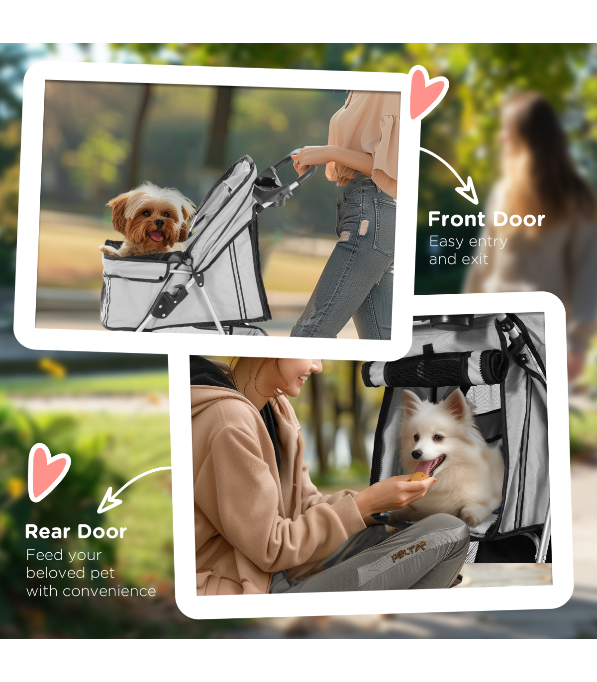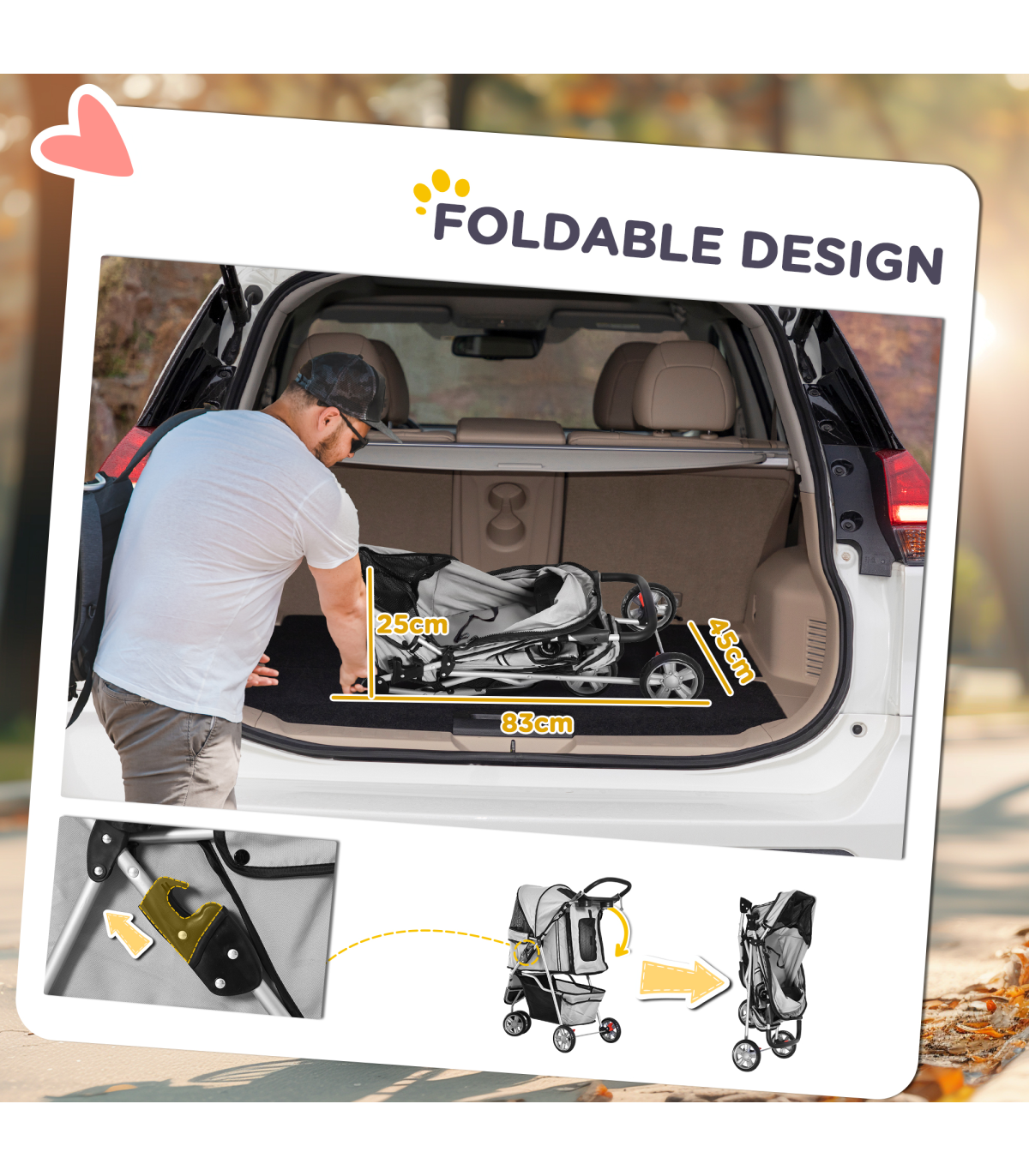 Pet Stroller Pushchair Carrier for Cat Puppy with 3 Wheels Grey Pawhut