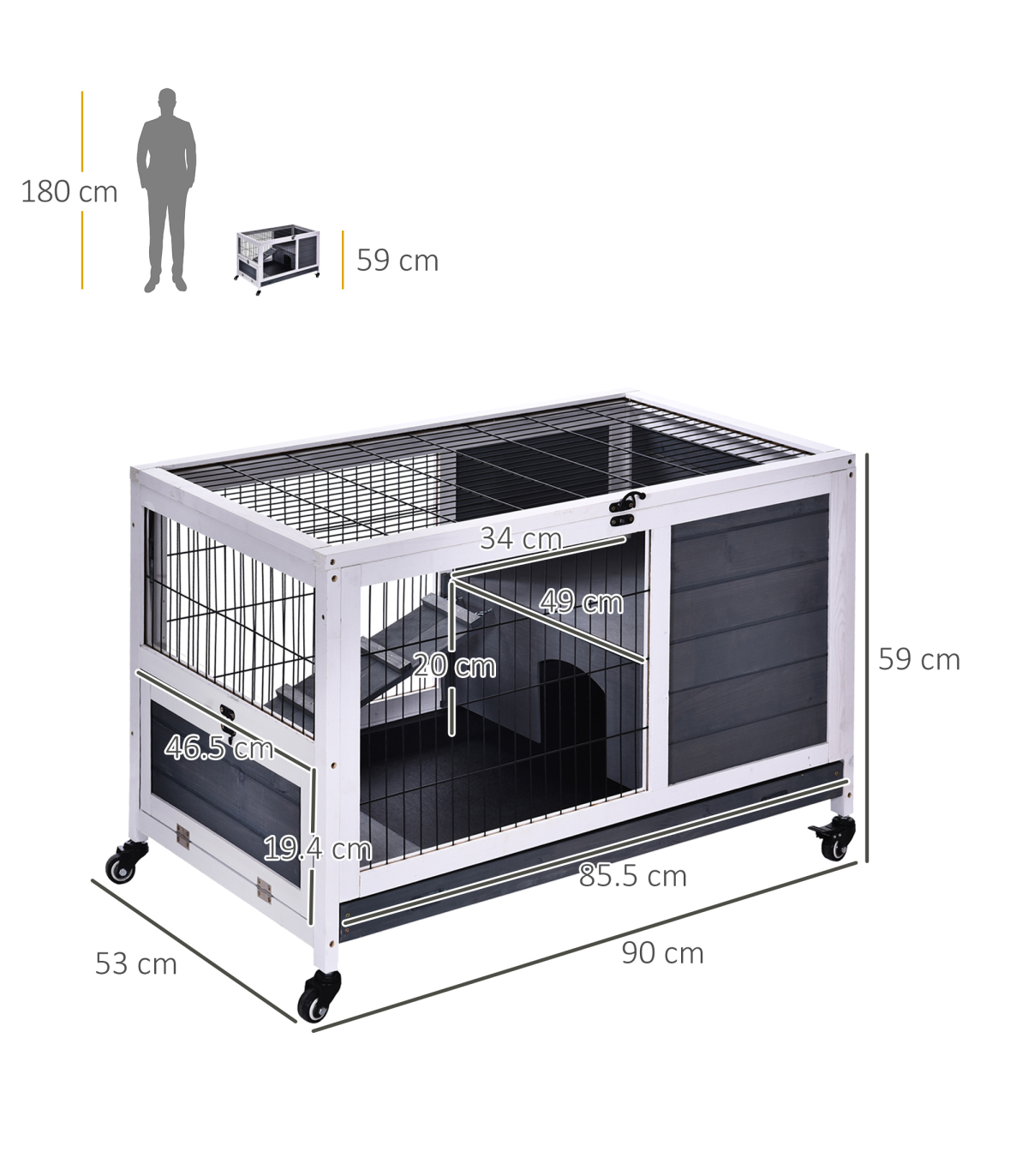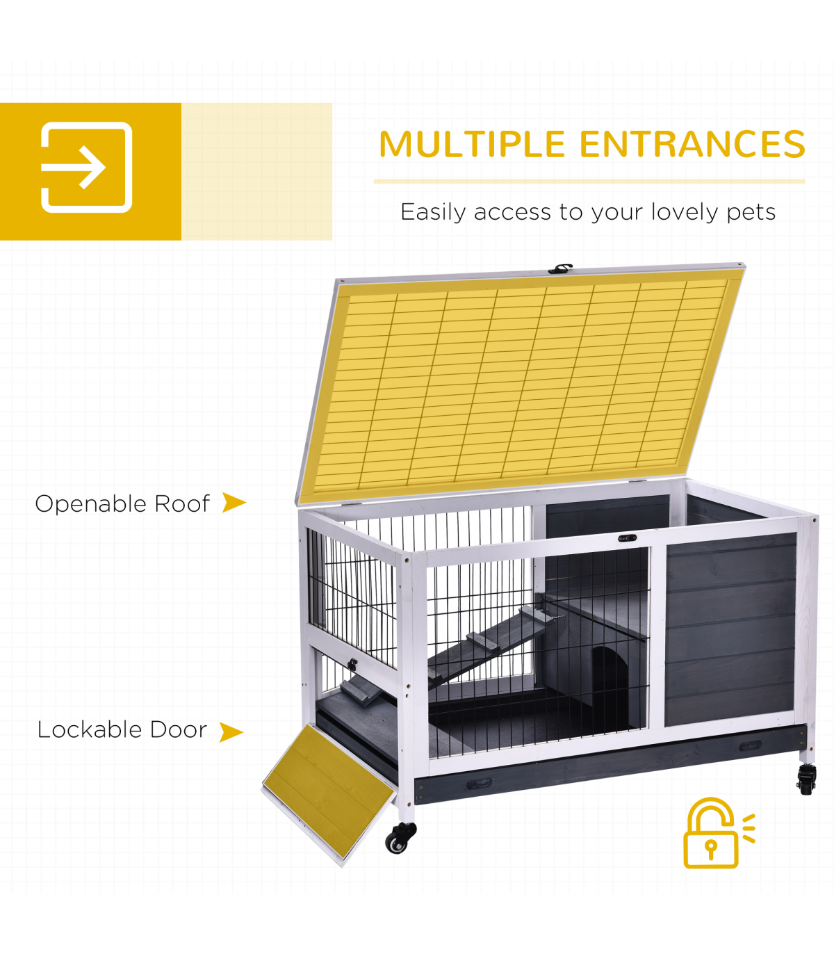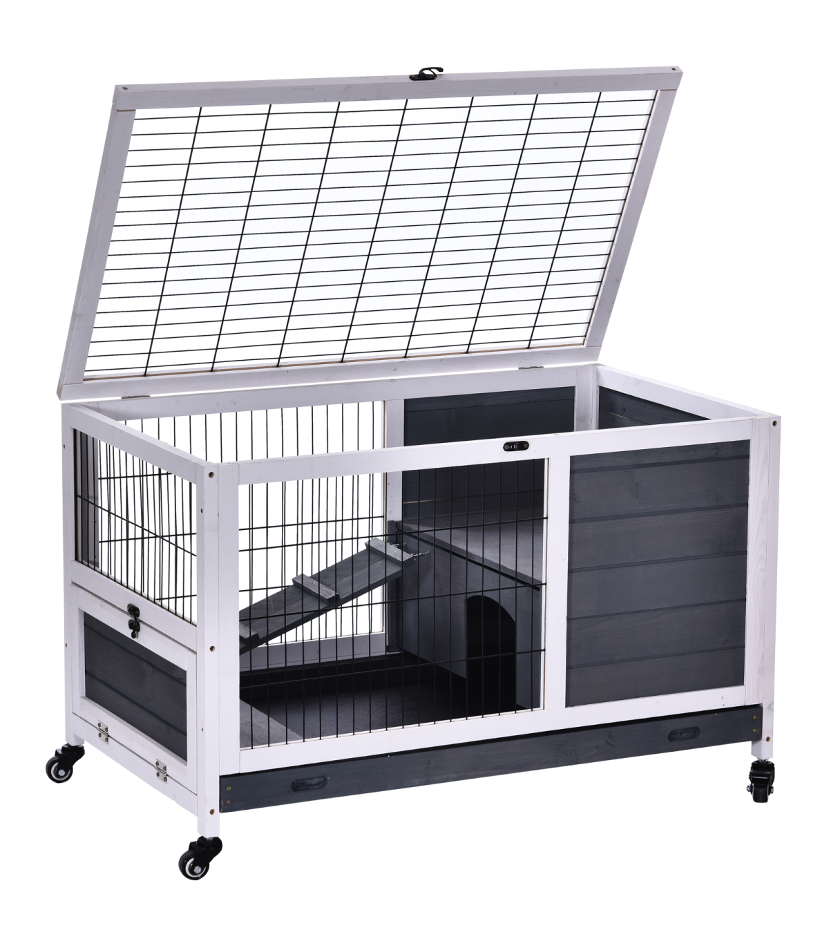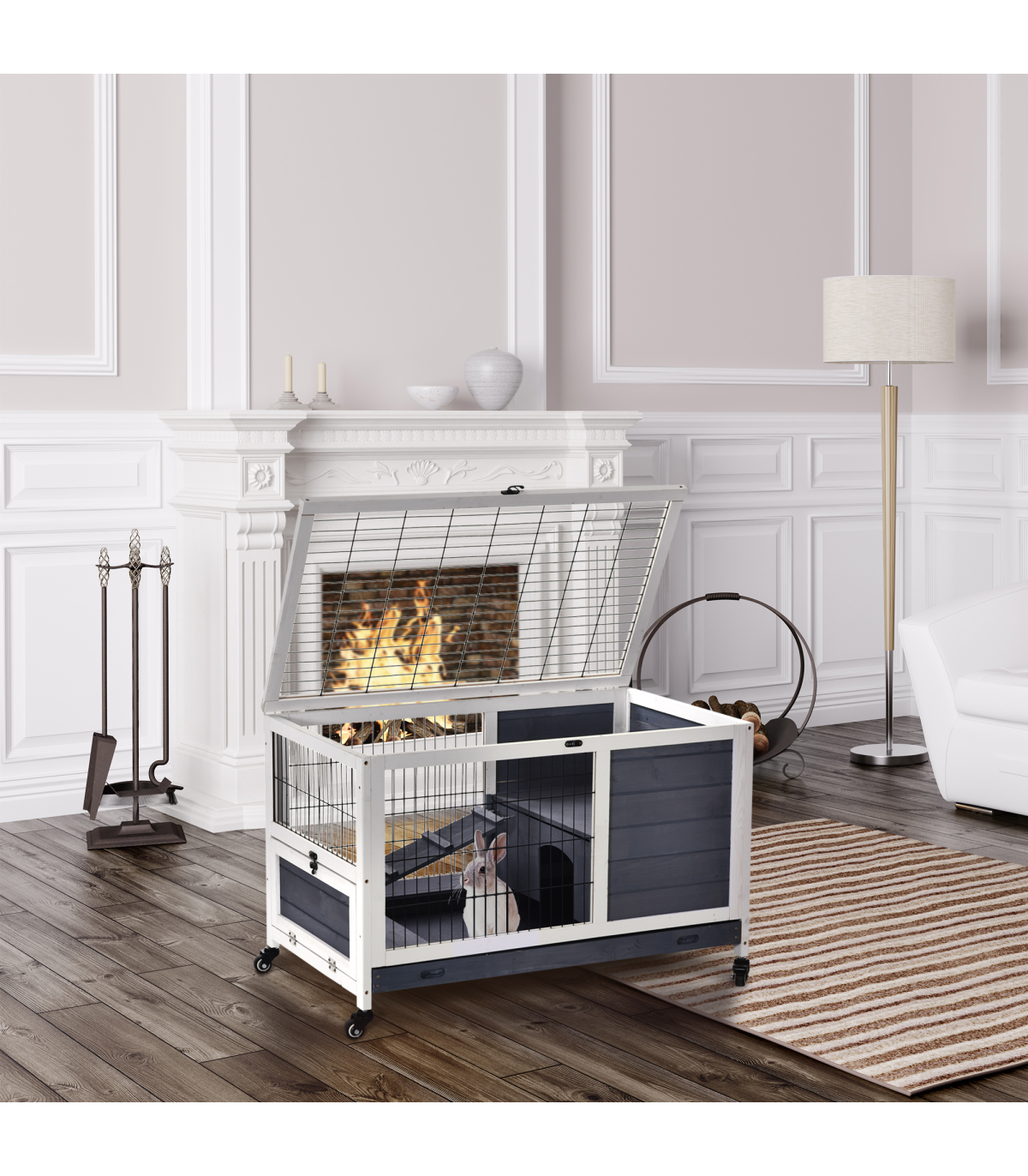 FOUR WHEELS: Allows the indoor rabbit hutch to be moved around easily. Two can be locked to keep in place when needed.