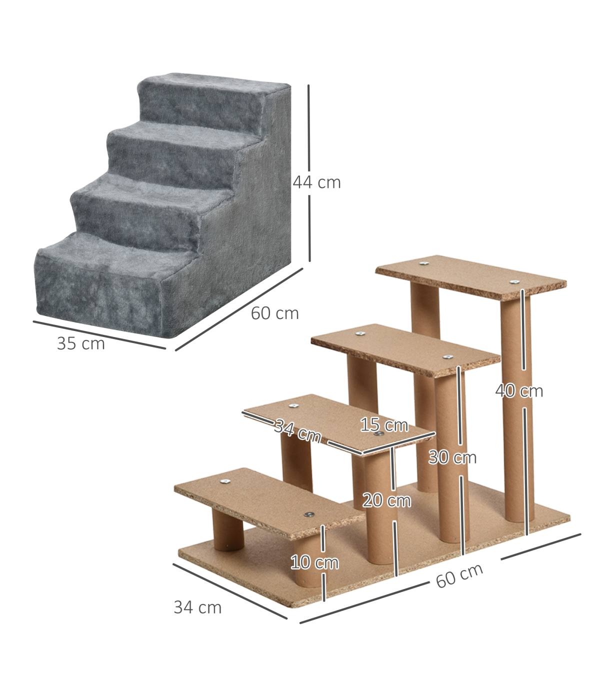 - Colour: Light grey - Material: Particle board and polyester - Dimensions: 44H x 60L x 35Wcm. Each step: 10H x 34L x 15Wcm. Base: 60L x 34Wcm - Item label: D06-091