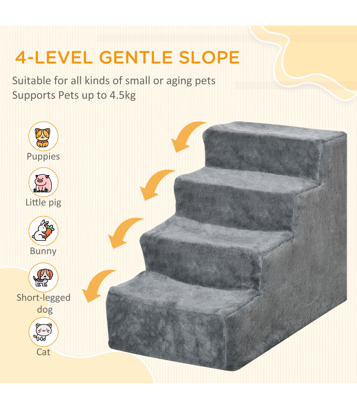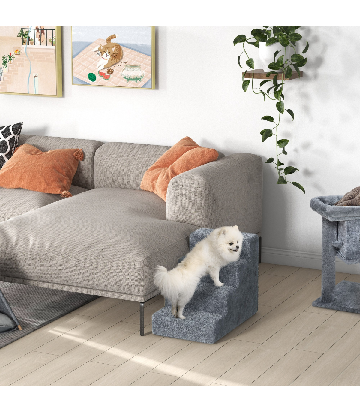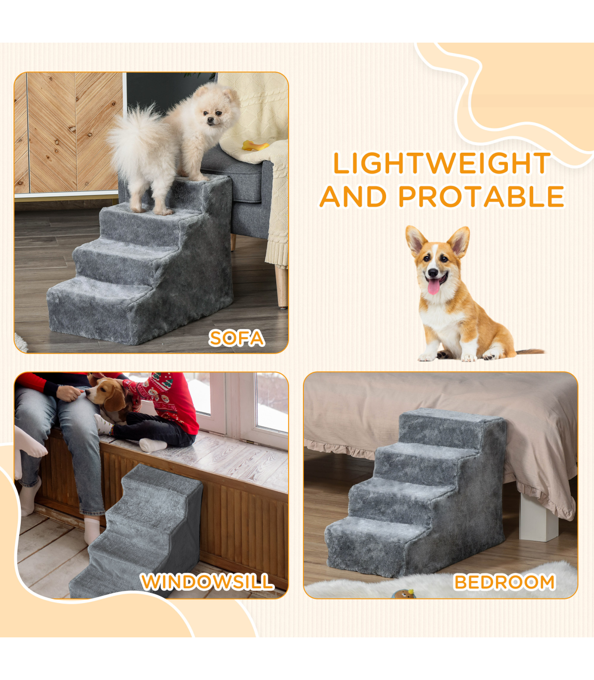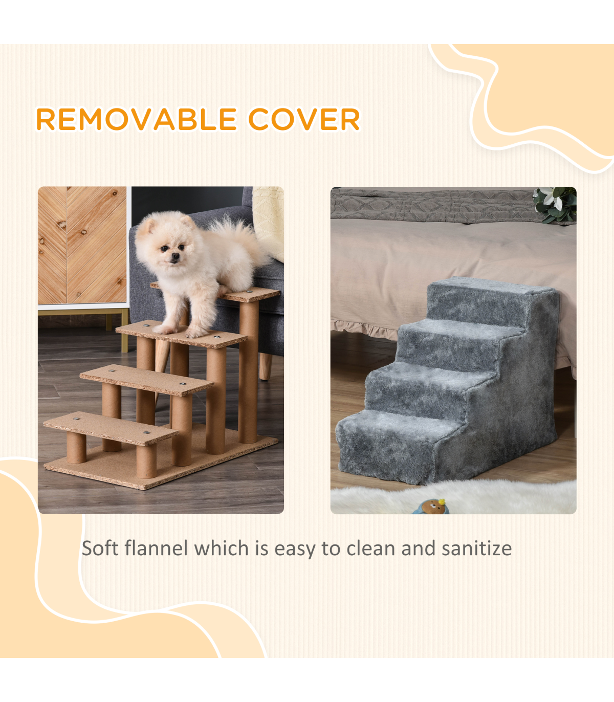 Portable Dog Stairs with Washable Plush Cover, for High Bed Sofa - Light Grey