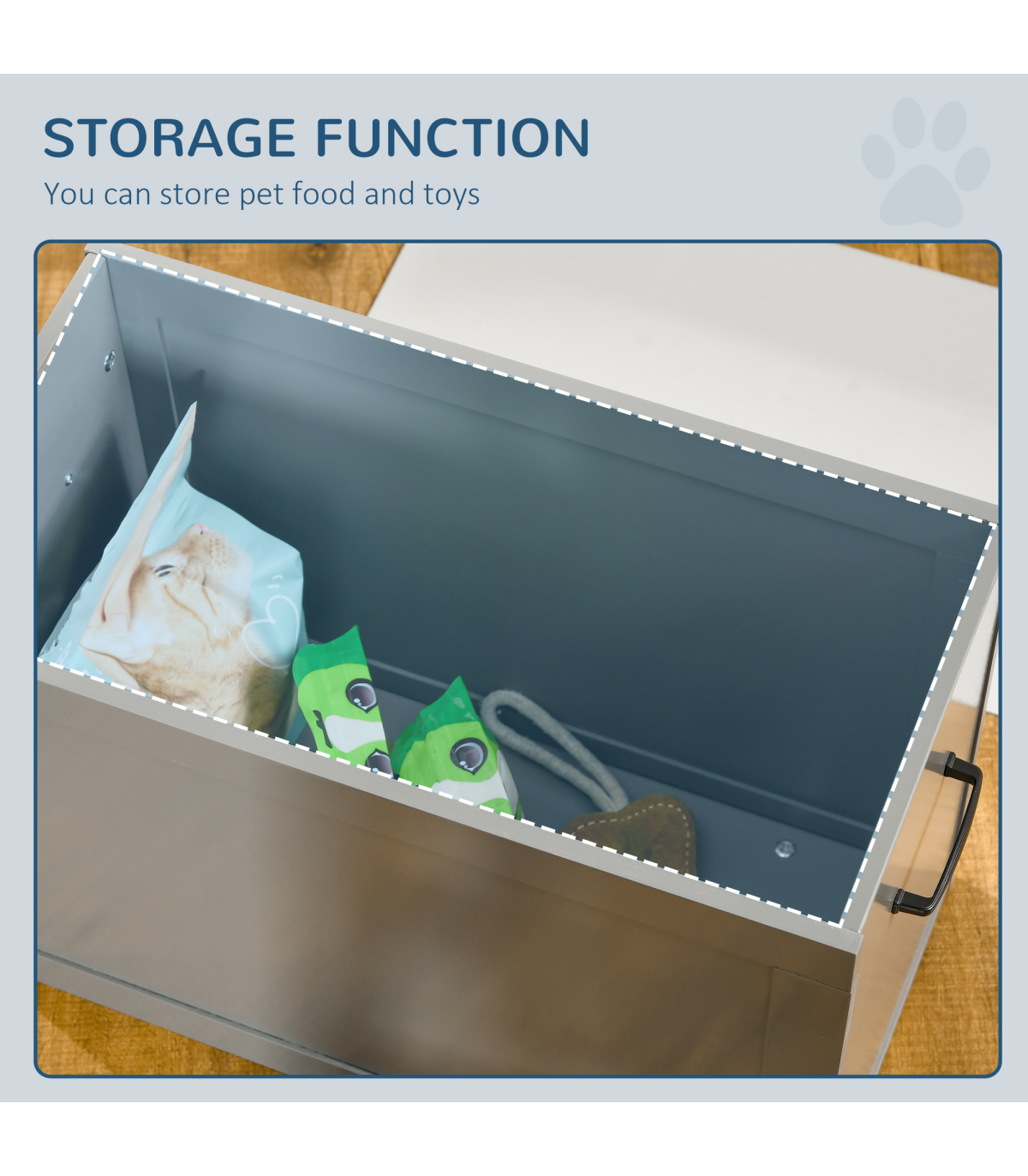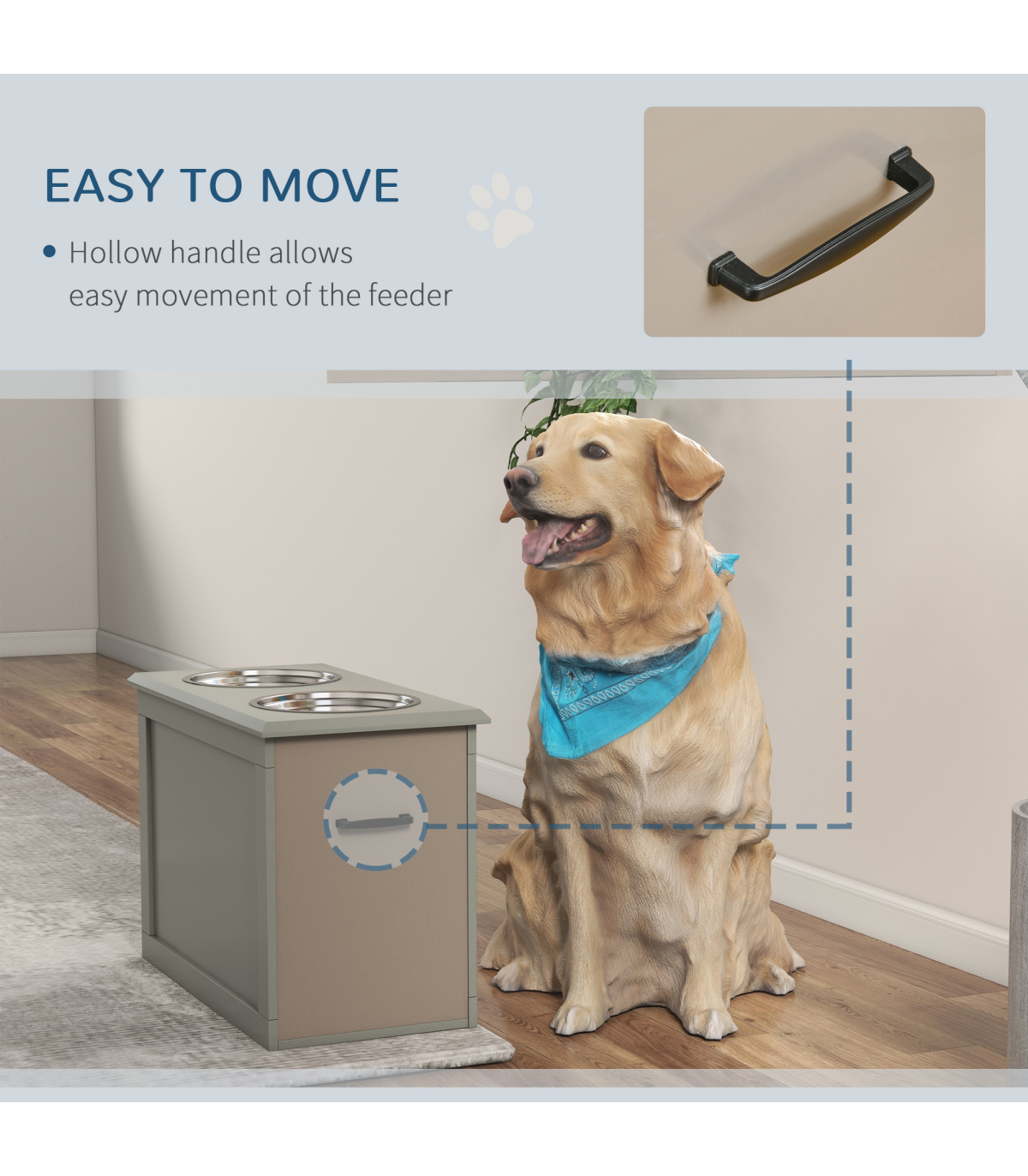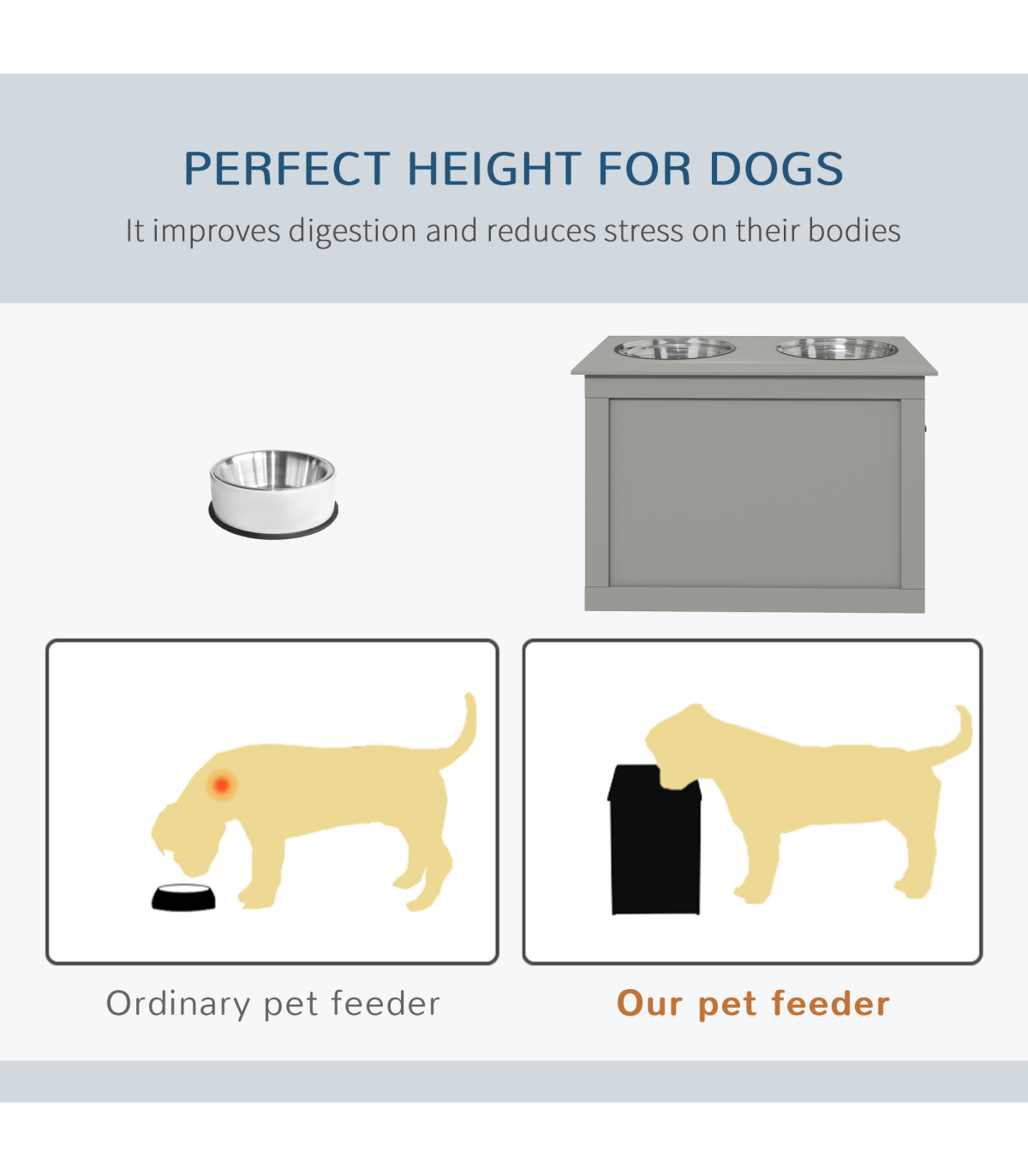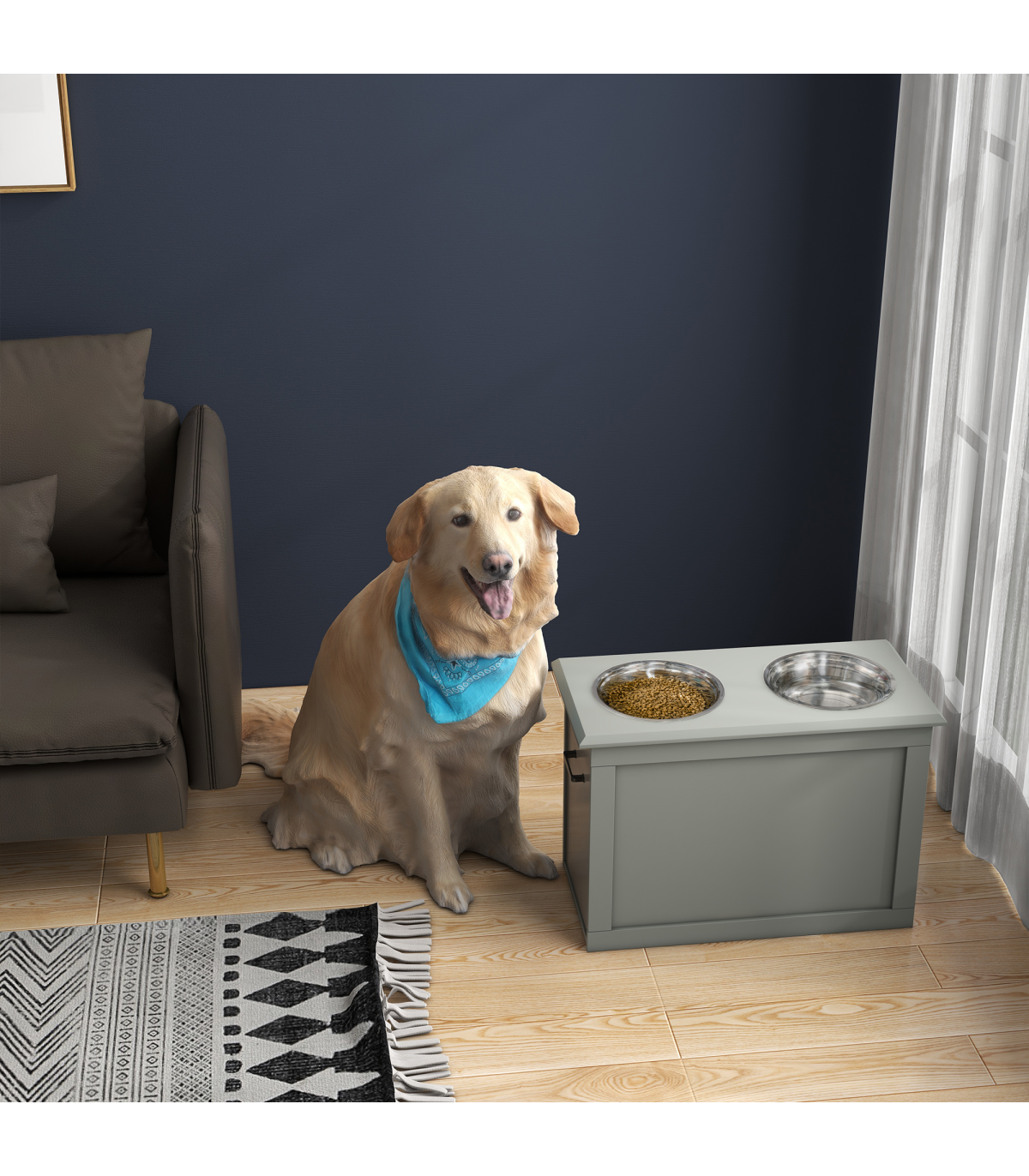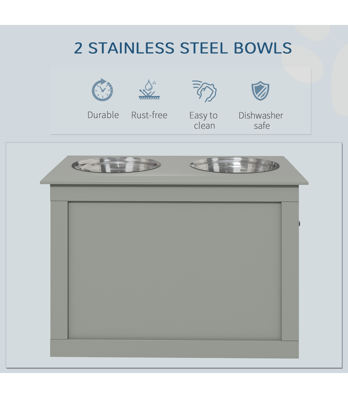 Raised Pet Dog Bowls w/ Storage, Two Bowls, Elevated Base - Grey