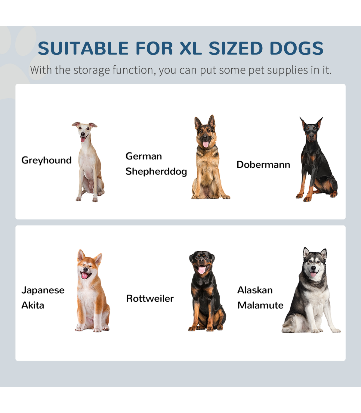 Dimensions: 41H x 60L x 30Wcm. Bowl: 7H x Dia24cm. Single bowl capacity: 2L. Handle: 10L x 2.5Wcm. Maximum load 30kg. Suitable for Golden Retrievers, Samoyeds, Labradors and other large dogs. Assembly required.