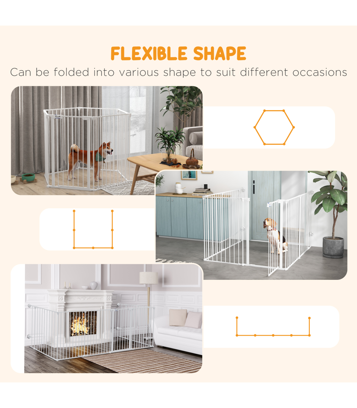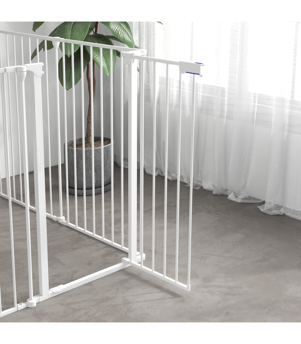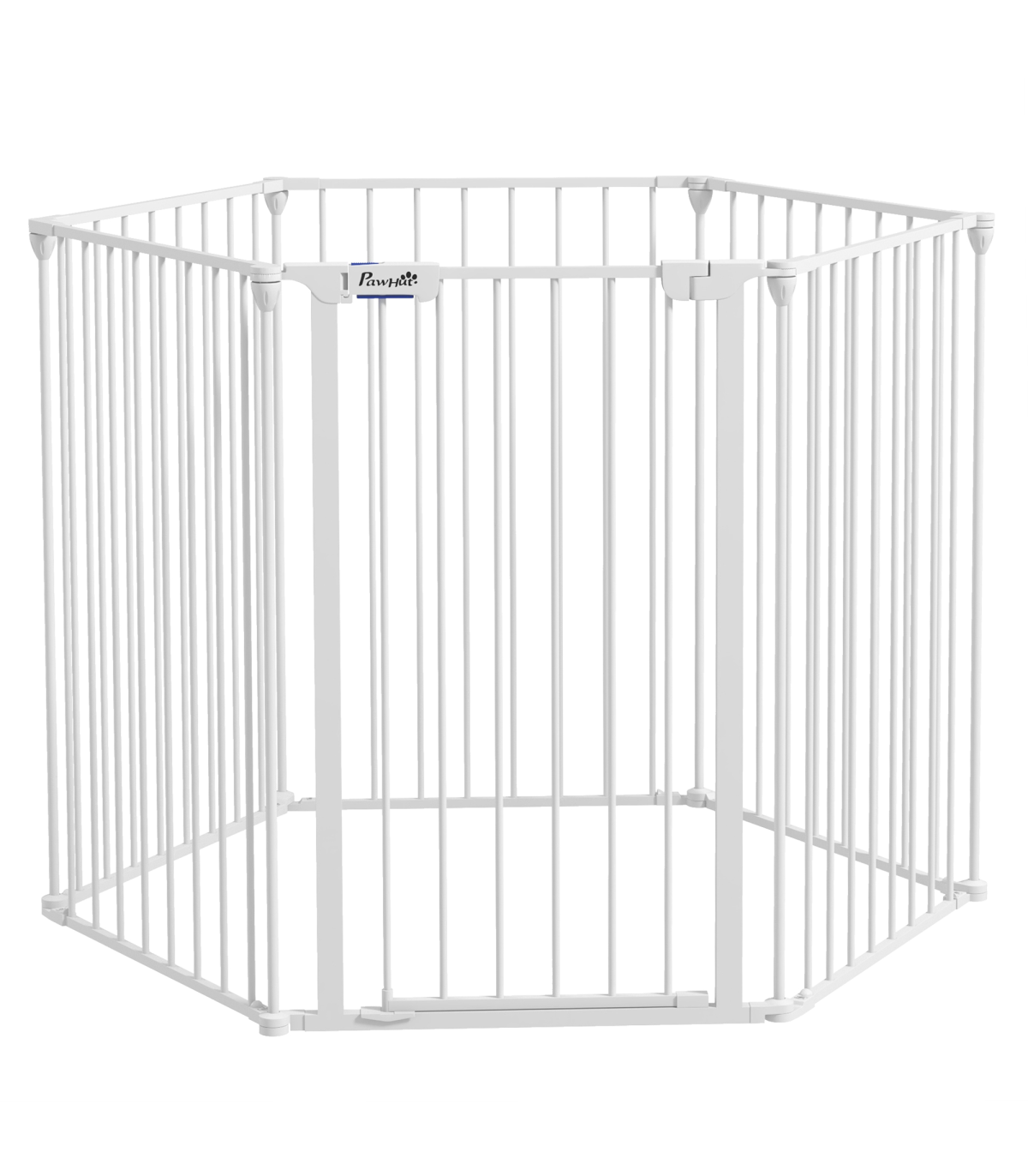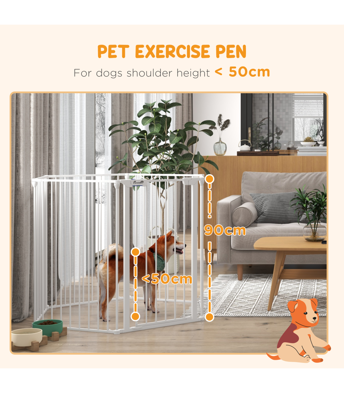PawHut 2 in 1 Dog Pen, Safety Pet Gate, 6 Panels, for Medium Dogs, 90Hcm - White