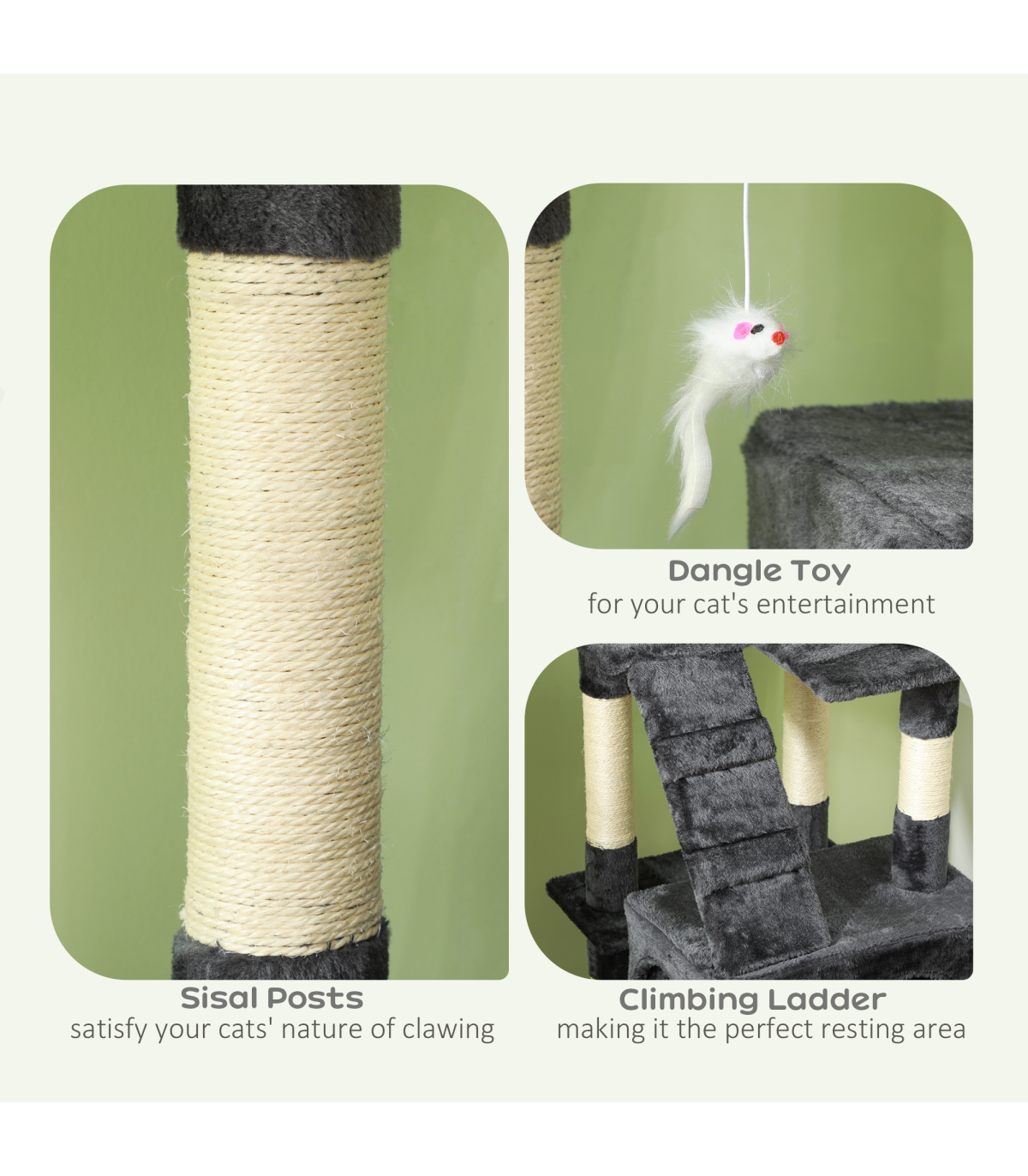PawHut Cat Tree Scratcher Activity Centre, Condo Scratching Post Toy Bed