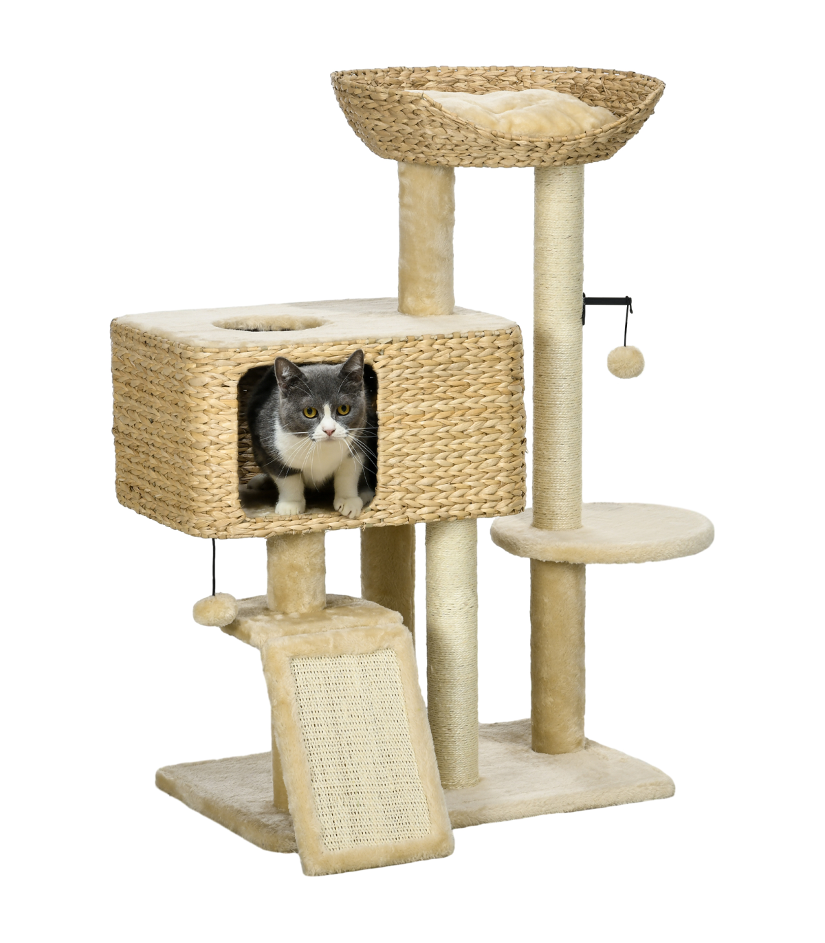 PawHut 95cm Cat Tree Tower with Scratching Post Cat House Ball Platform - Beige