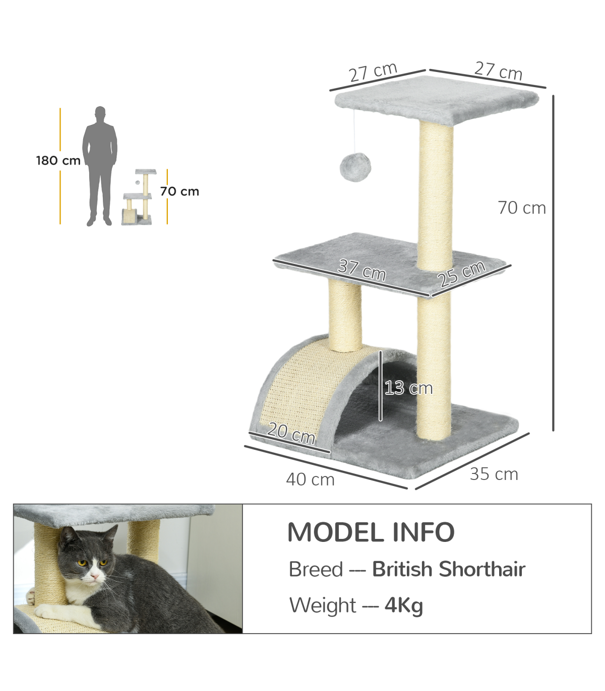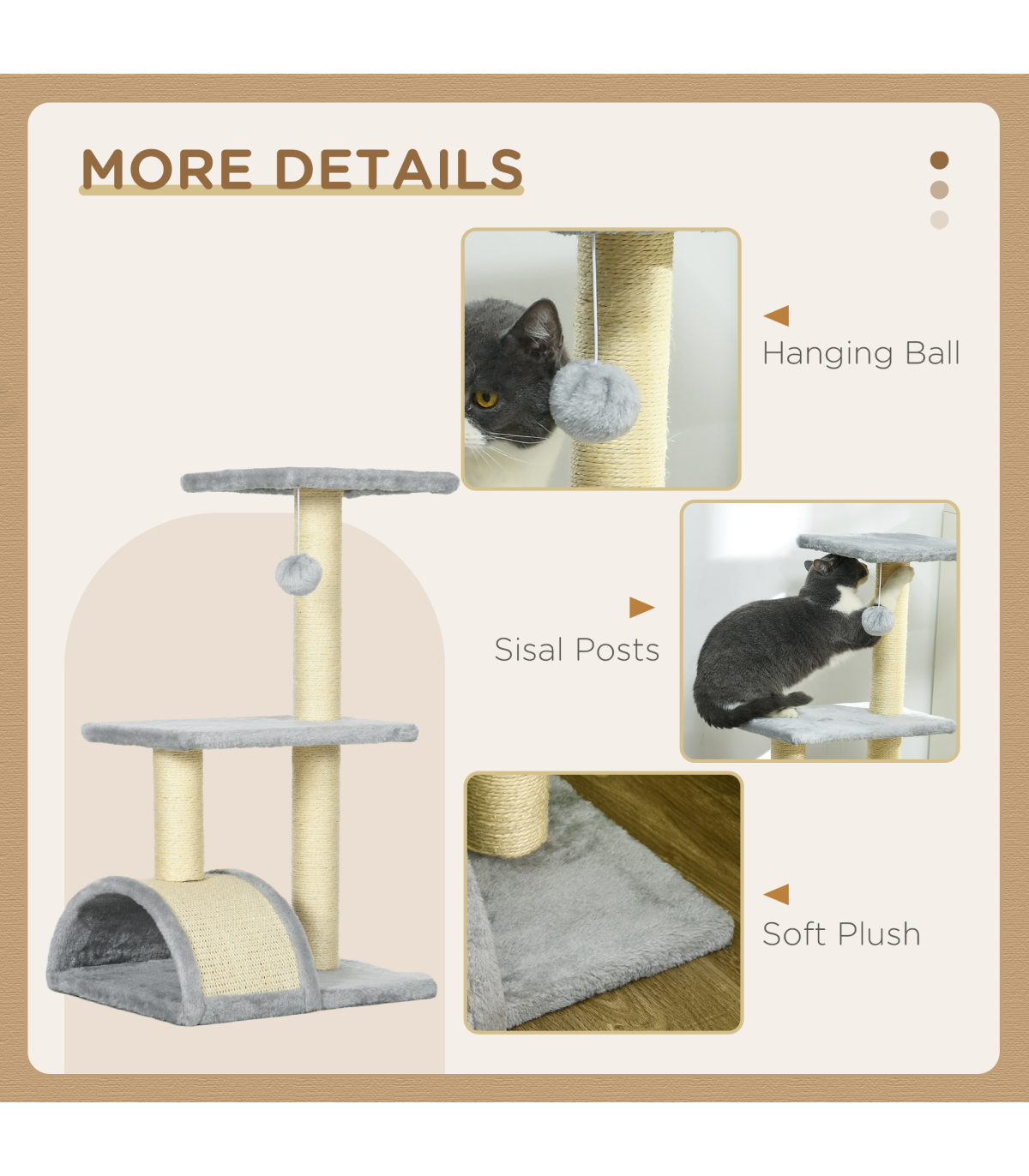 ● Multi-level cat tree, allowing pets to climb and keep active