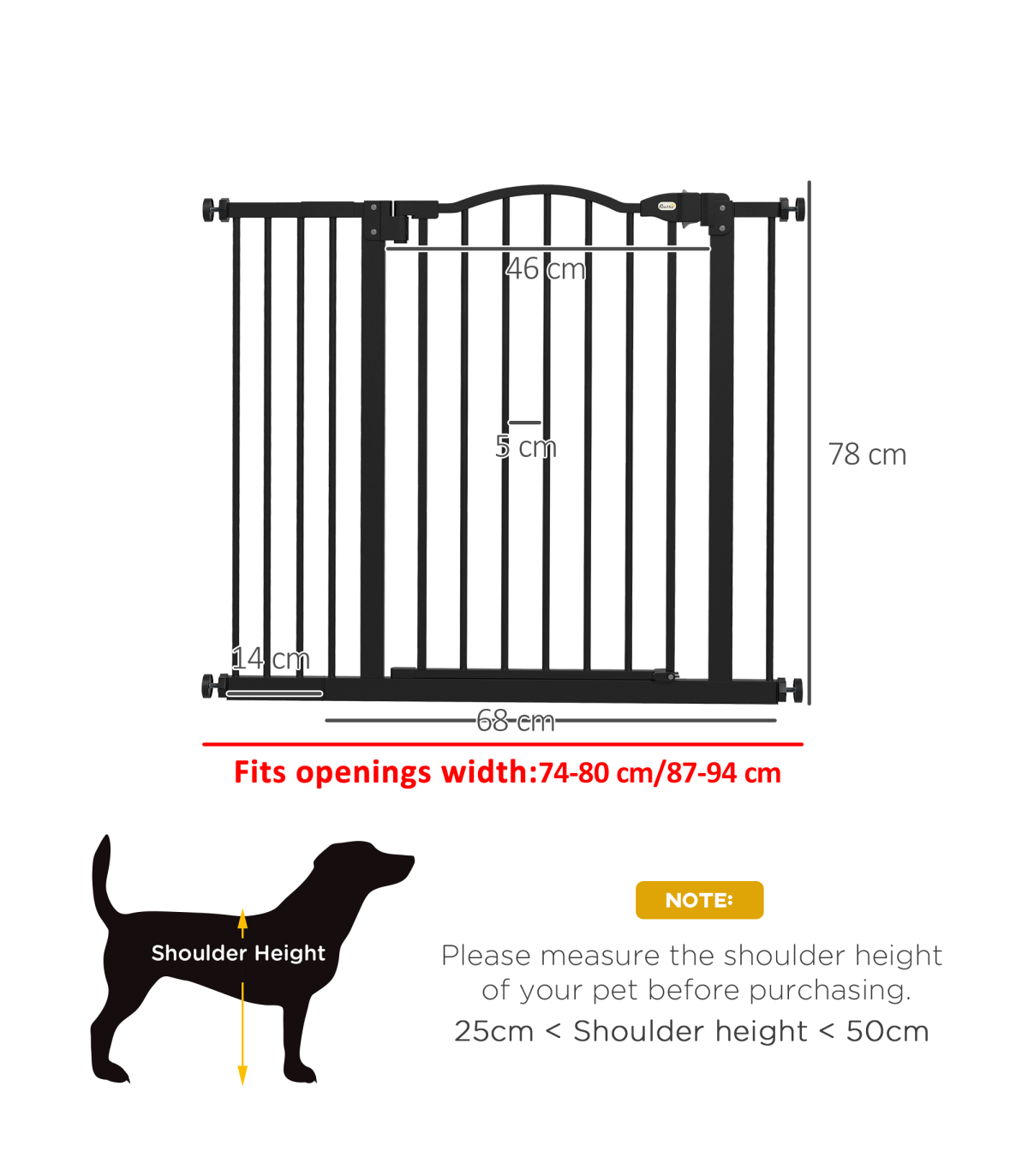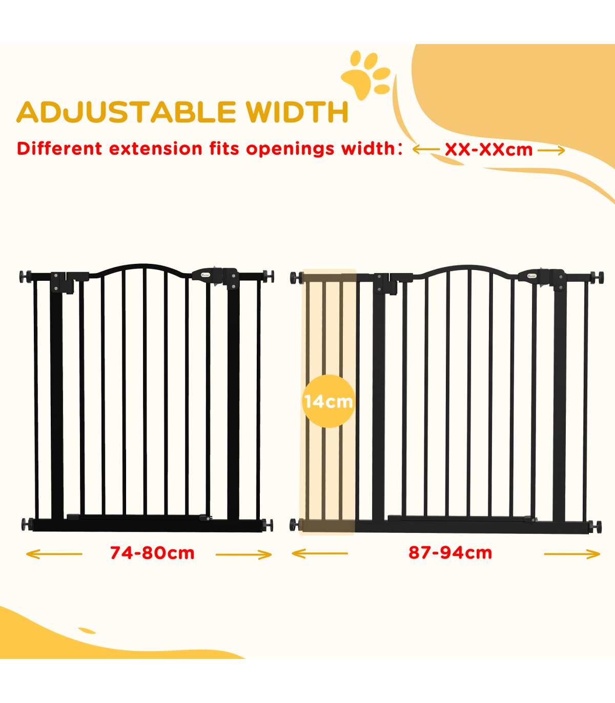 • Adjustable width between 74cm and 80cm/87cm and 94cm, fits different doorways and frames