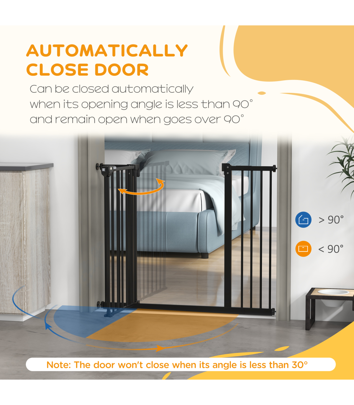 ● When the opening angle is less than 90°, the door will close automatically