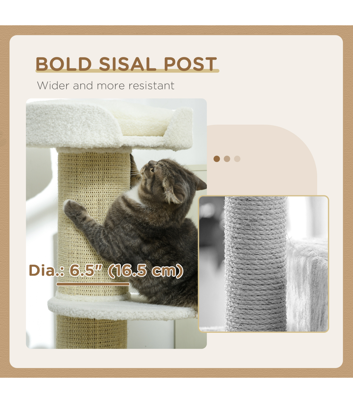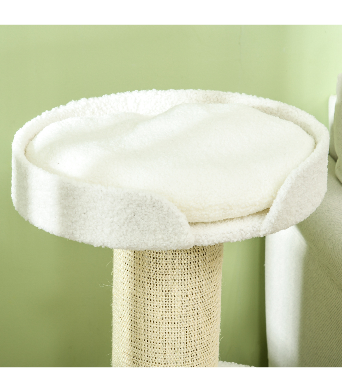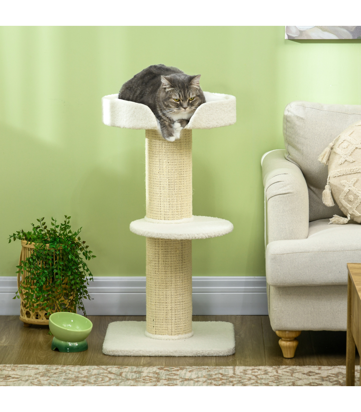 PawHut 2 Tier Cat Resting Tree with Top Basket Cushion Sisal Post Cream White