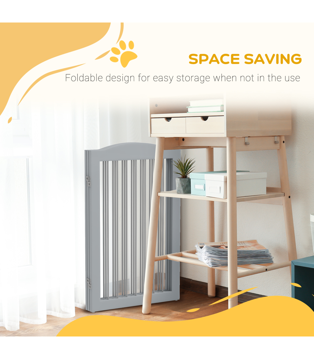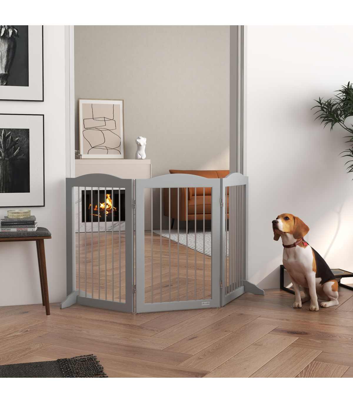 Need pets away from certain areas? This PawHut pet gate is your solution. With three panels, held together by strong hinges, you can set up into different shapes � ideal for doorways, hallways, staircases, bedrooms and more. Durable MDF structure, it stays firmly upright, whilst the wide support feet provide extra stability, making it freestanding. A quick and easy setup, this wooden dog gate must be a safe and effective way to stop pets from going where they shouldn't.