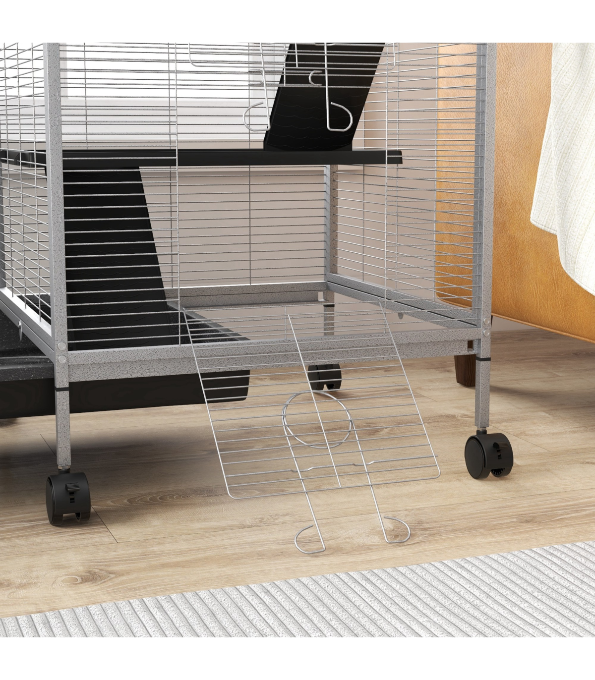 PawHut Rolling Small Animal Cage for Chinchillas Ferrets Kittens W/ Ramp Grey