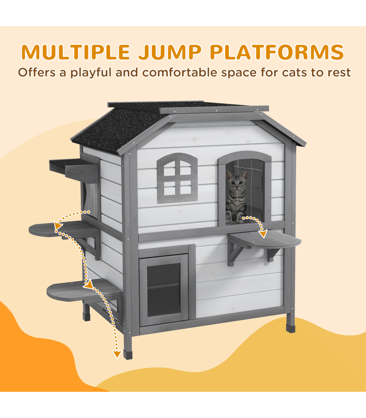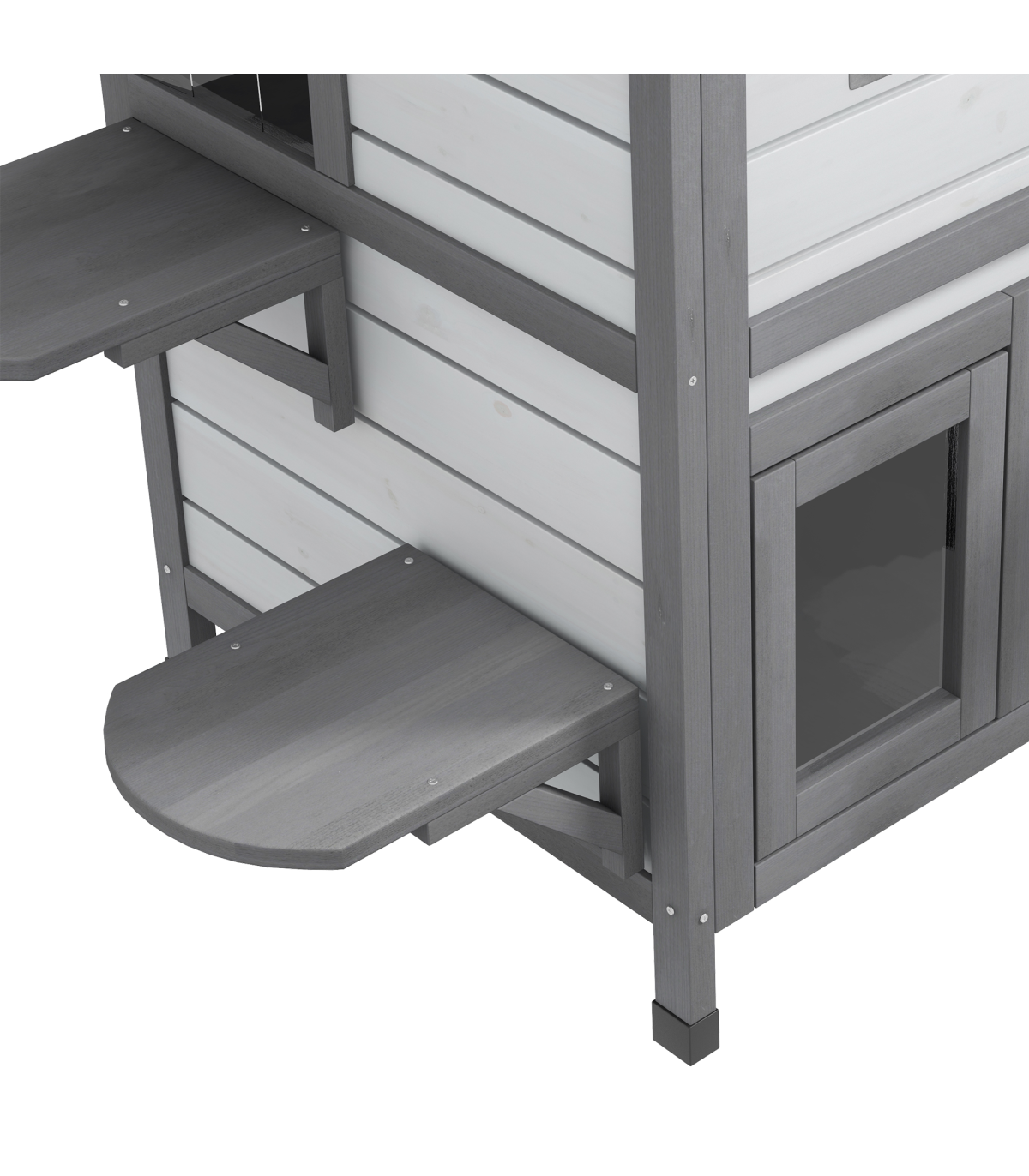 ● Escape door, side doors, jumping platforms and a floor hole provide fun entrances for cats