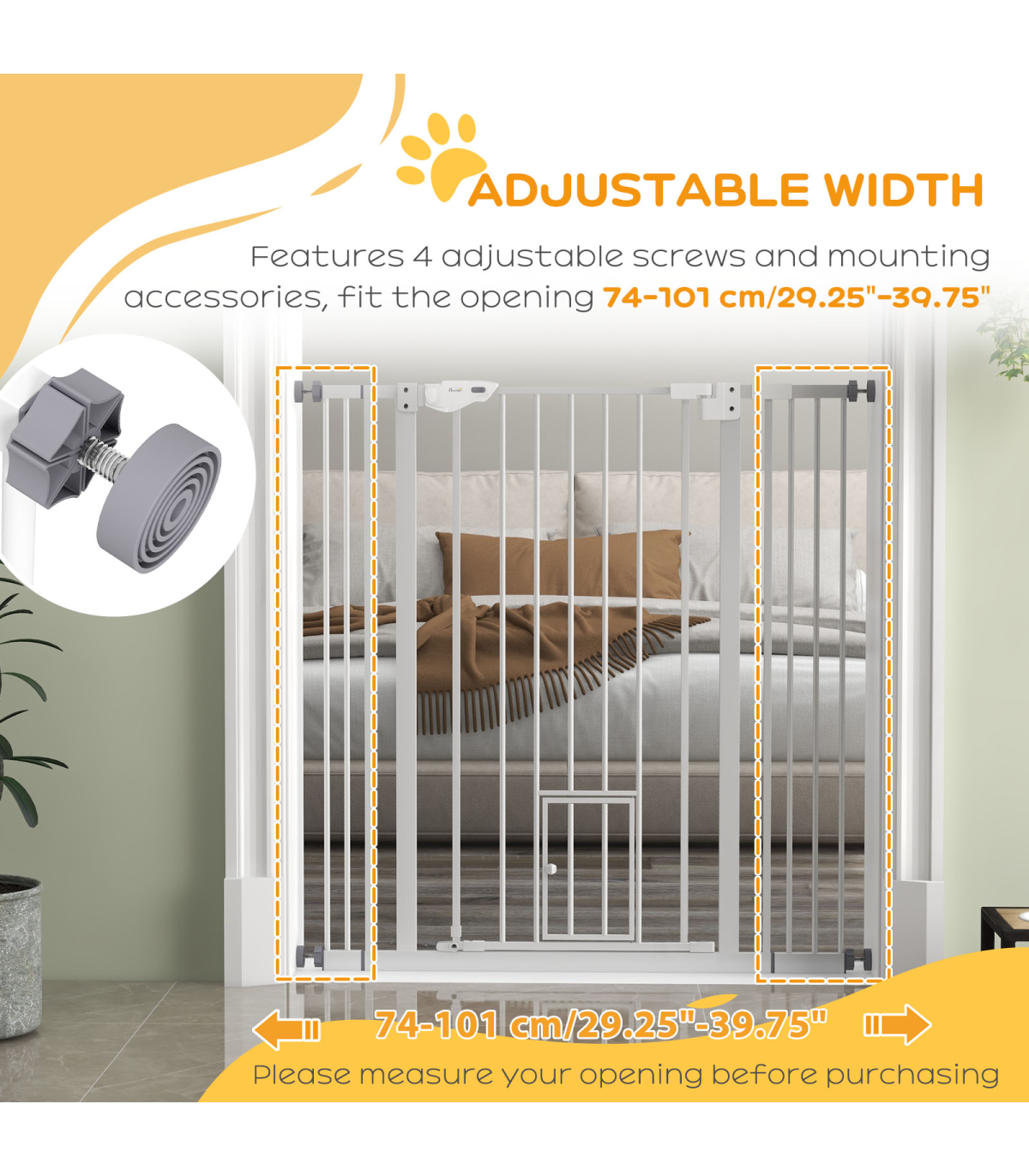 ● Overall Dimension: 74 - 101W x 104.1H cm (With adjusting screws). 68W x 104.1H cm(Without adjusting screws)