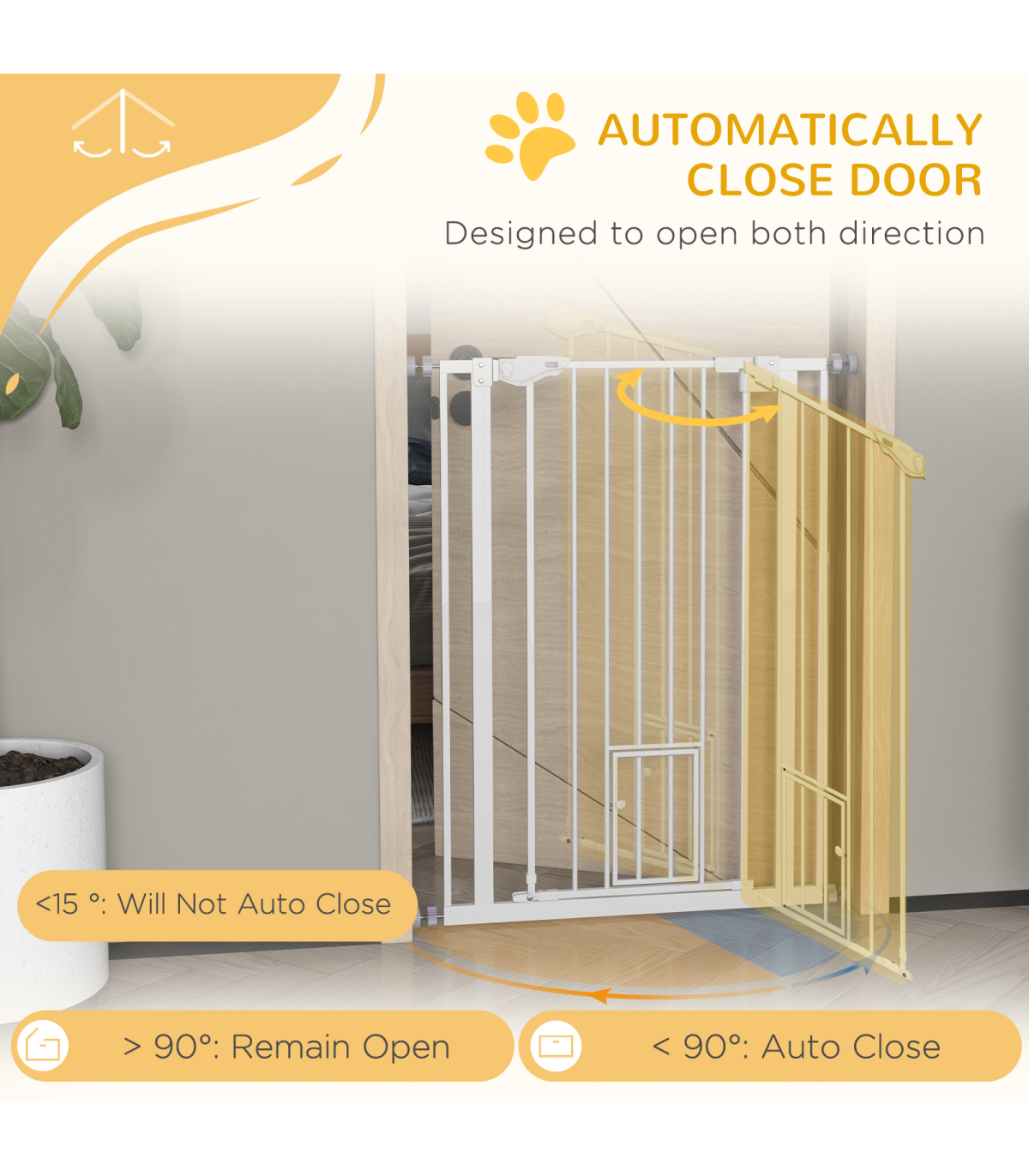 ● When the opening angle is less than 90°, the door will close automatically