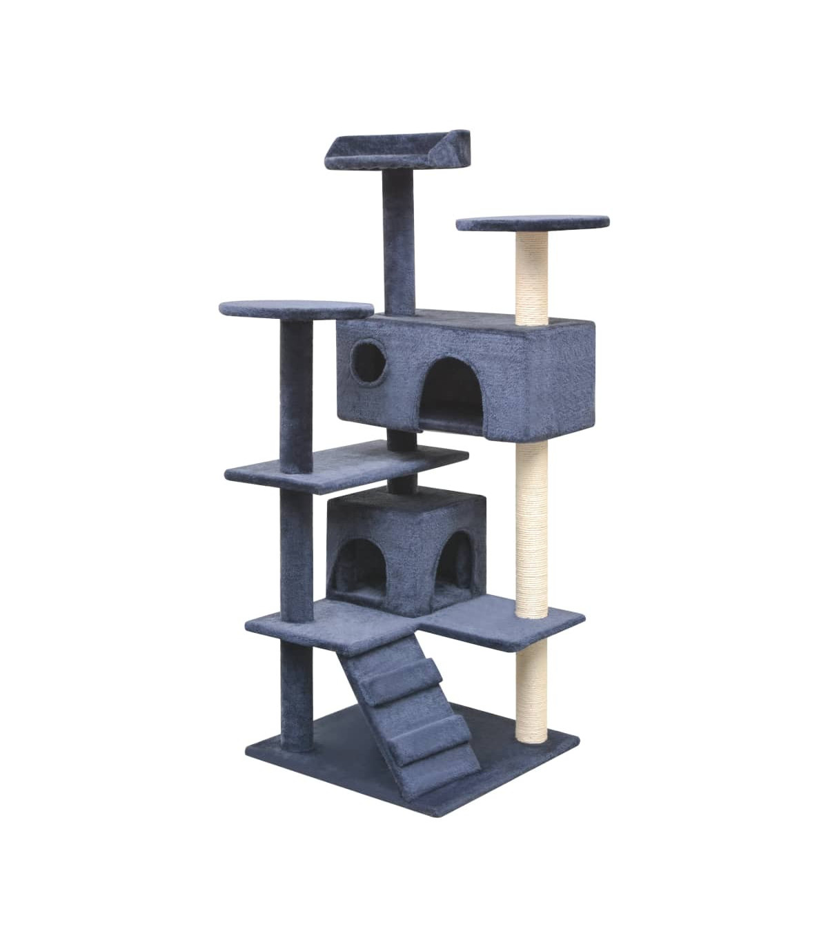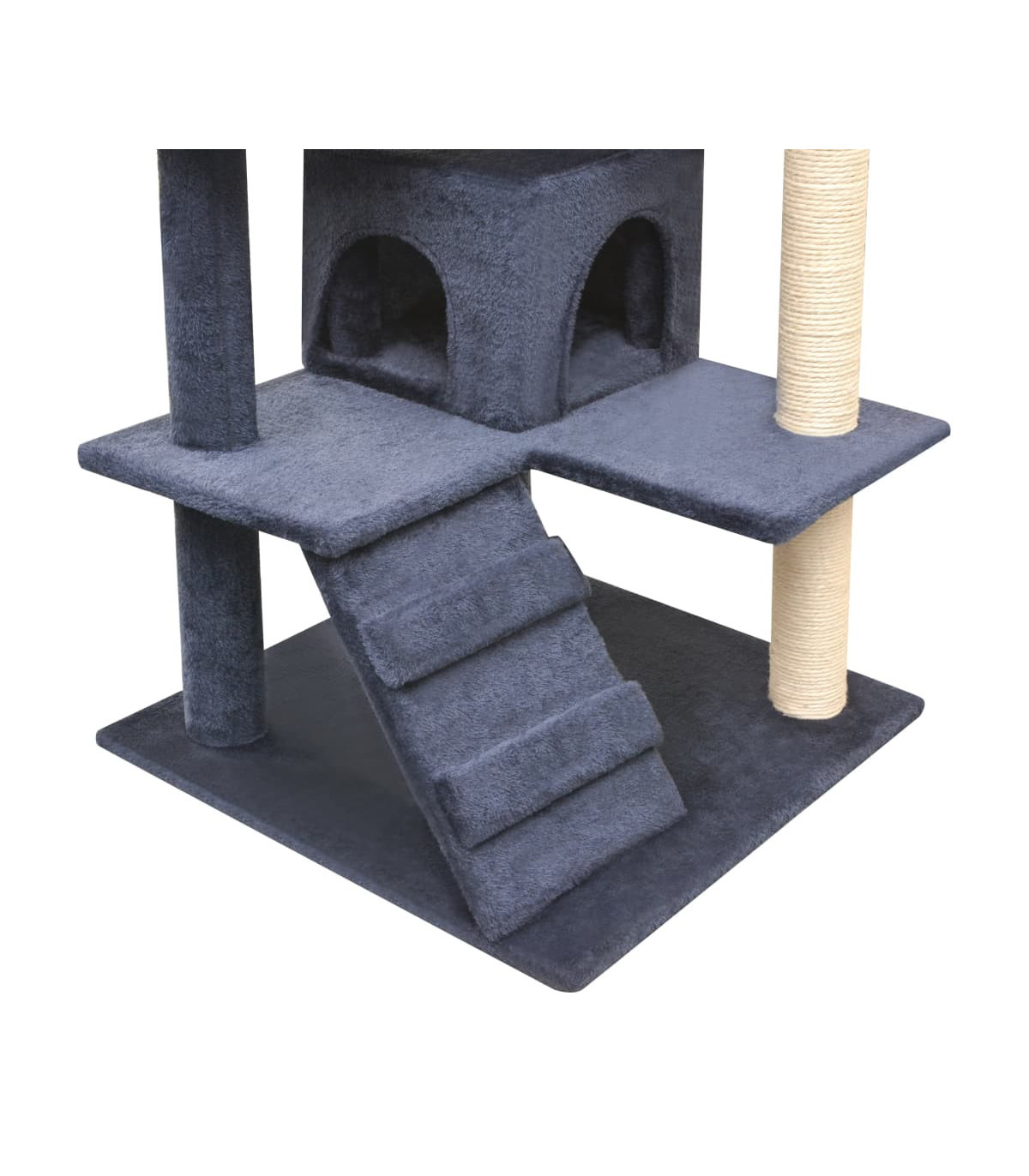 Give your feline friends a taste of luxury with our feature-packed cat tree! This multi-storey cats' play centre, with a solid frame covered in soft, comfortable plush, is the perfect retreat for your cats to scratch, climb, perch, hide, and rest. Your feline friends can sharpen their claws on the scratching posts wrapped in sisal rope, which provides a healthy outlet for their scratching instincts. They will also enjoy chasing after each other while jumping up and down this fun play centre. When they've had enough playtime fun, your little friends will love resting on the upper platforms where they have a better view. They can also hide in the cosy houses to take a nap. With all these fun features, this cat tree will become your furry friends' favourite hangout spot!