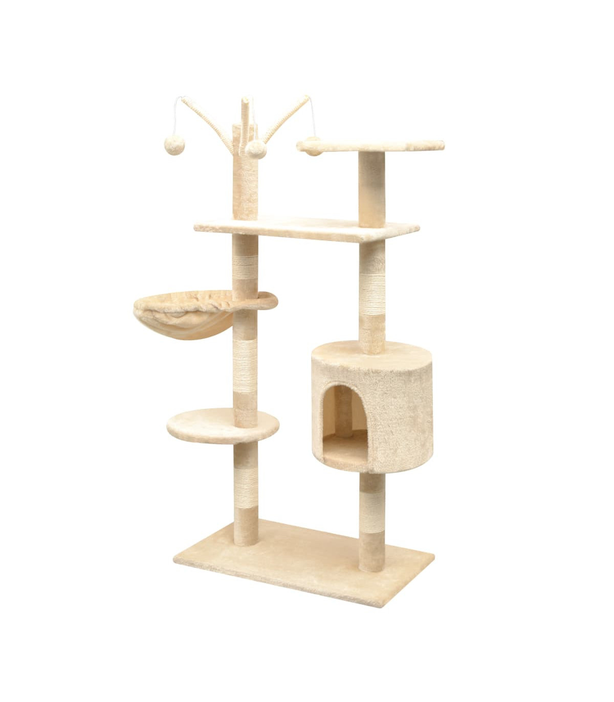 Give your feline friends a taste of luxury with our feature-packed cat tree! This multi-storey cats' play centre, with a solid frame covered in soft, comfortable plush, is the perfect retreat for your cats to scratch, climb, perch, hide, and rest. Your feline friends can sharpen their claws on the scratching posts wrapped in sisal rope, which provides a healthy outlet for their scratching instincts. They will also enjoy chasing after each other while jumping up and down this fun play centre. When they've had enough playtime fun, your little friends will love resting on the upper platforms where they have a better view. They can also hide in the cosy houses to take a nap. With all these fun features, this cat tree will become your furry friends' favourite hangout spot!