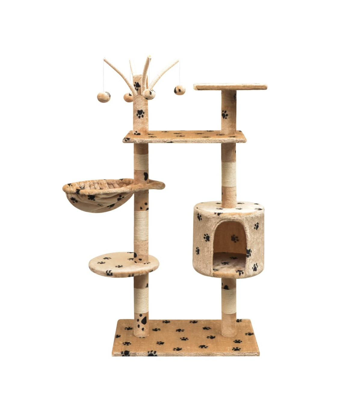 Give your feline friends a taste of luxury with our feature-packed cat tree! This multi-storey cats' play centre, with a solid frame covered in soft, comfortable plush, is the perfect retreat for your cats to scratch, climb, perch, hide, and rest. Your feline friends can sharpen their claws on the scratching posts wrapped in sisal rope, which provides a healthy outlet for their scratching instincts. They will also enjoy chasing after each other while jumping up and down this fun play centre. When they've had enough playtime fun, your little friends will love resting on the upper platforms where they have a better view. They can also hide in the cosy houses to take a nap. With all these fun features, this cat tree will become your furry friends' favourite hangout spot!