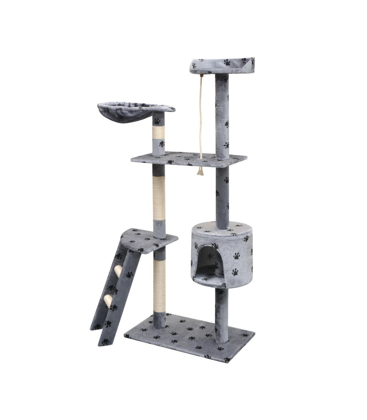 Give your feline friends a taste of luxury with our feature-packed cat tree! This multi-storey cats' play centre, with a solid frame covered in soft, comfortable plush, is the perfect retreat for your cats to scratch, climb, perch, hide, and rest. Your feline friends can sharpen their claws on the scratching posts wrapped in sisal rope, which provides a healthy outlet for their scratching instincts. They will also enjoy chasing after each other while jumping up and down this fun play centre. When they've had enough playtime fun, your little friends will love resting on the upper platforms where they have a better view. They can also hide in the cosy houses to take a nap. With all these fun features, this cat tree will become your furry friends' favourite hangout spot!