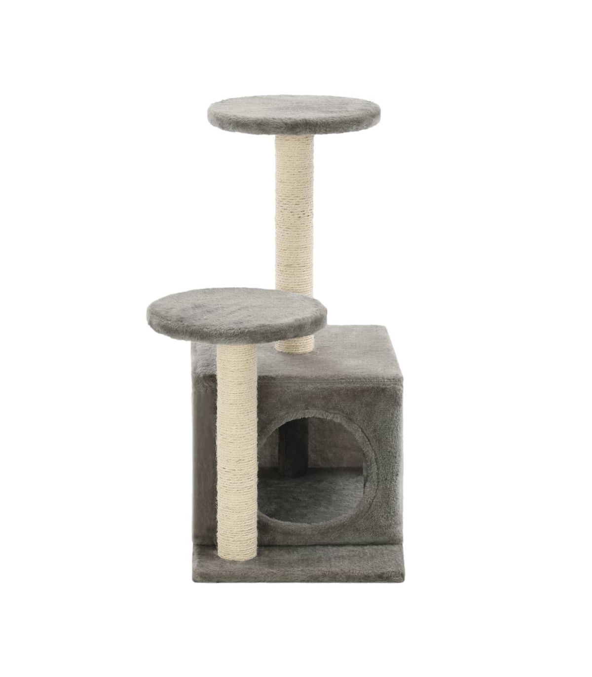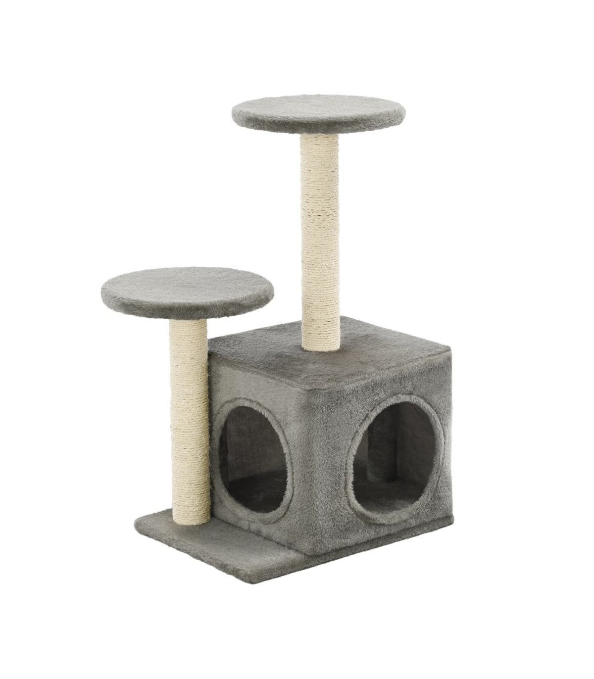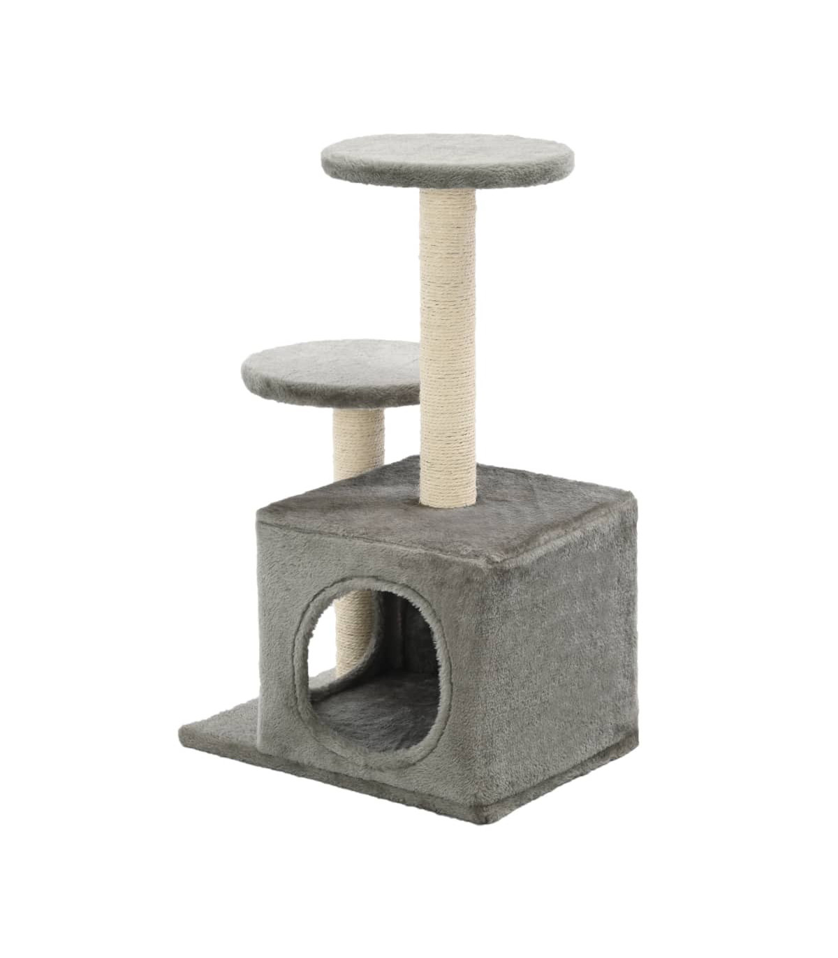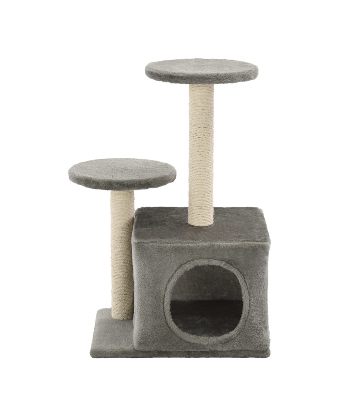 Give your feline friends a taste of luxury with our feature-packed cat tree! This cats' play centre, with a solid frame covered in soft, comfortable plush, is the perfect retreat for your cats to scratch, climb, perch, hide, and rest. Your feline friends can sharpen their claws on the scratching posts wrapped in sisal rope, which provides a healthy outlet for their scratching instincts. They will also enjoy chasing after each other while jumping up and down this fun play centre. When they've had enough playtime fun, your little friends will love resting on the upper platforms where they have a better view. They can also hide in the cosy house to take a nap. It is suitable for kittens. With all these fun features, this cat playhouse will become your furry friends' favourite hangout spot!