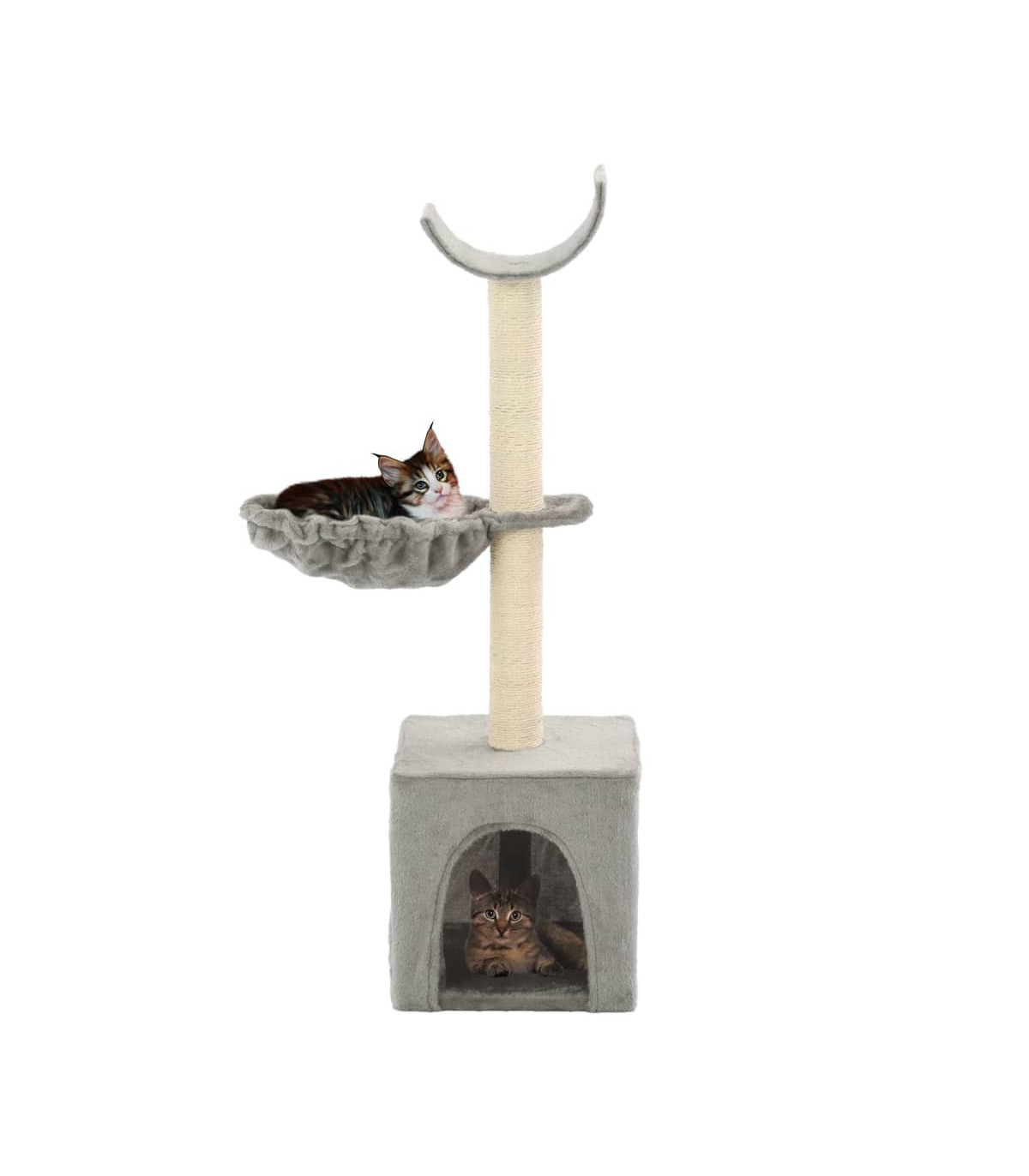 With this high-quality cat tree, your cats can scratch, perch, hide, climb and relax to their heart's content. It will suit any decor. The cat scratching tree will also give your cats the chance to stretch and exercise, especially in the cold winter months when they are stuck indoors. The plush, carpeted surface is highly comfortable, and the scratch posts wrapped in sisal rope satisfy cats' clawing instinct. Your feline friends can also hide in the cosy houses to take a nap, or take a load off on the comfy baskets. The base is sturdy and stable. The cat tree is easy to assemble.