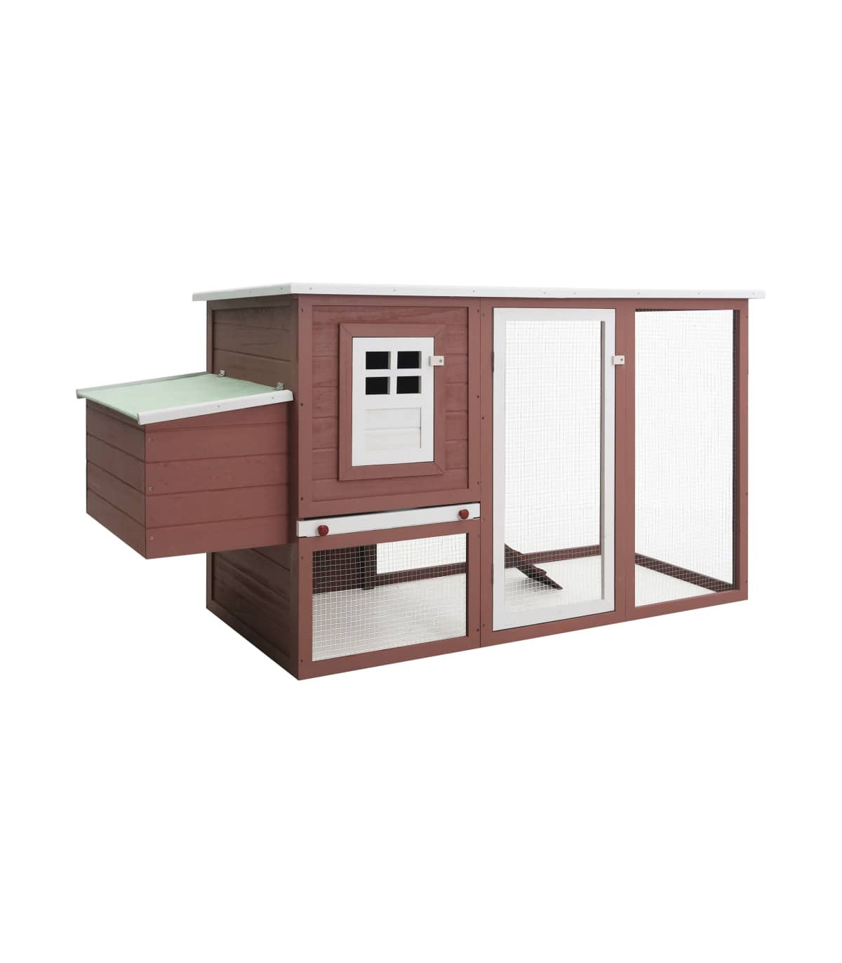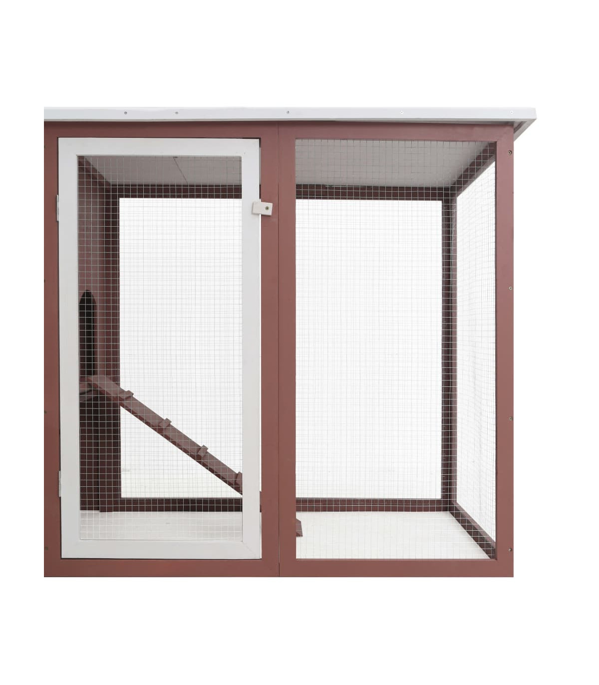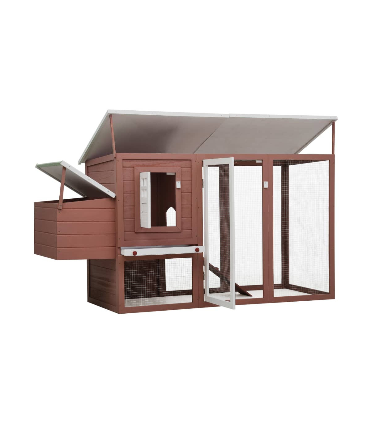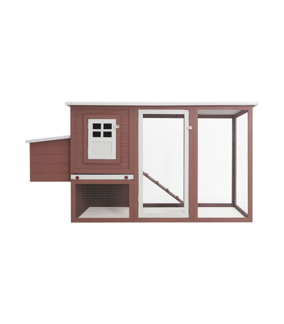 This wooden chicken cage provides a large cozy place. Made of high-quality pine wood, the cage is durable for years of use. The green waterproof roof on the top keeps rain away, creating a warm, comfortable resting area inside the cubby. Thanks to the close-knit iron wire mesh, your chickens will always get enough fresh air. An easy-climb ramp leads from the lower ground level to the upper floor. A pull-out tray allows an easy cleaning. And the door can be easily locked with a slide-bolt latch. In addition, an egg cage is designed for you to put the eggs in a safe place. Important note: We recommend you placing the chicken cage under shelter. Accordingly, it will last a longer life.