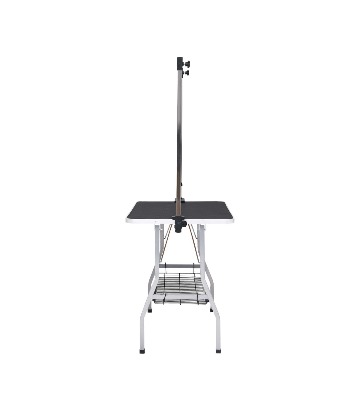 The dog grooming table is a good choice for providing your lovely pets the most comfort while being groomed. This pet grooming table is supported by steel legs, making it stable and sturdy. The large non-slip tabletop creates a comfortable surface for your pets to stand on. Additionally, the stainless steel grooming arm is height adjustable. So, you can adjust in a perfect height to suit you and your pet's size. The table is foldable, which is ideal for mobile pet groomers and home use as it is easy to store. There is a basket under the tabletop, which can be used to store pet daily items. What's more, the round corners prevent injury.