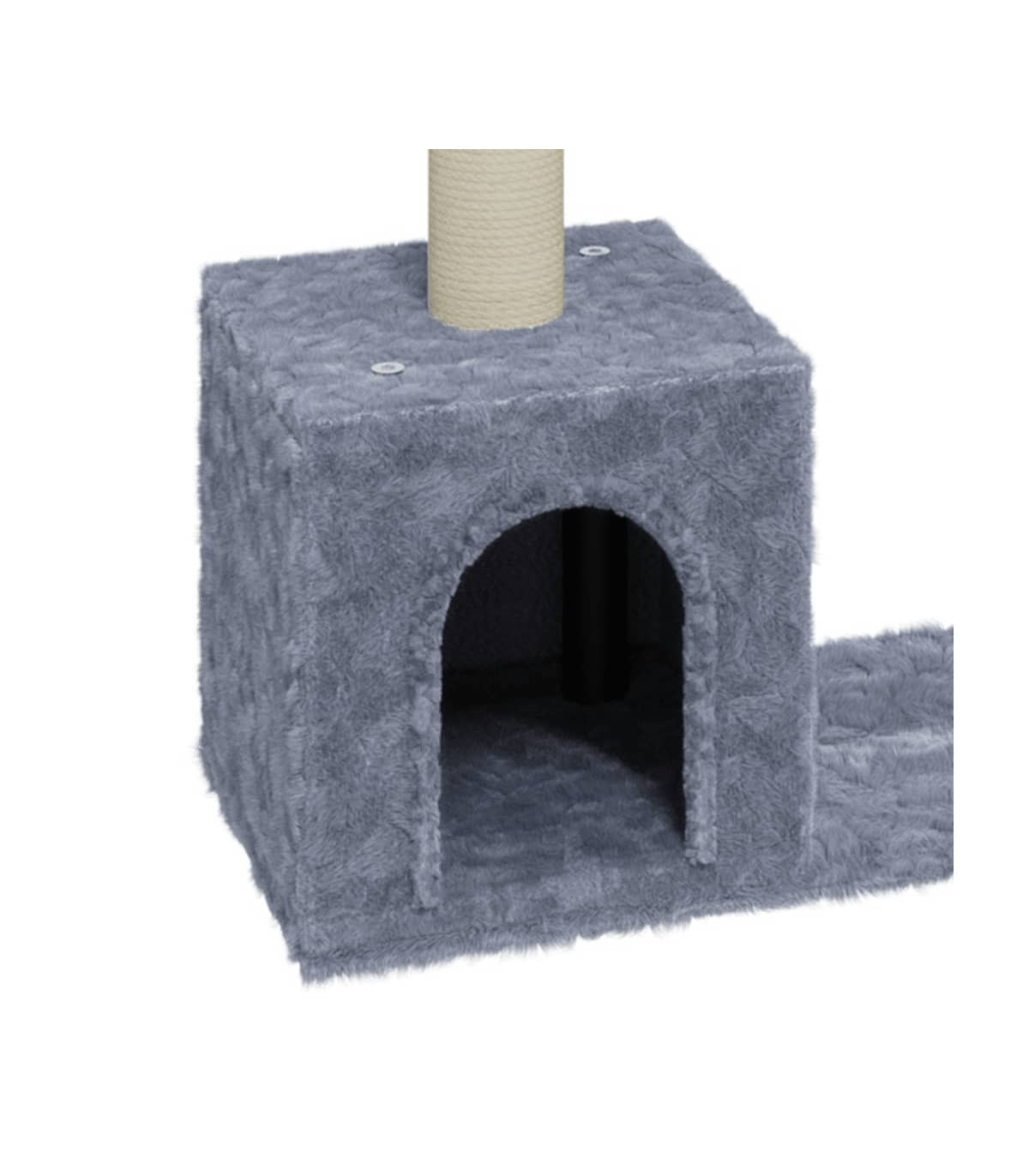 This cat tree is the perfect retreat for your cats to scratch, climb, perch, hide, and rest. It gives your cats the chance to stretch and exercise, especially in the cold winter months when they are stuck indoors. Your furry friends can sharpen their claws on the scratching posts wrapped in sisal rope, which provides a healthy outlet for their scratching instincts. Additionally, they will also rejoice in chasing after each other while jumping up and down this fun play centre. When they've enjoyed enough playtime, your little friends will love resting on the upper platforms where they have a better view. Besides, they can also hide in the cosy house to take a nap, or take a load off on the comfortable plush seat. With all these entertaining features, this cat tree will definitely become your furry friends' favourite hangout spot!