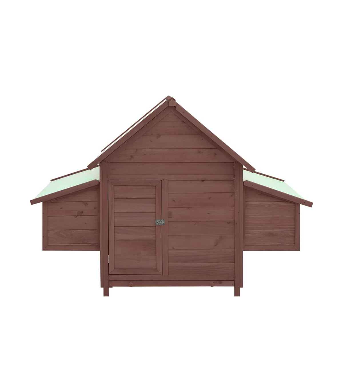 This wooden chicken coop is a perfect choice for feeding your chickens and keeping them comfortable. The hen house has been designed with a frontal window to allow fresh air in. It has two nest boxes, both with a roof that can be opened for the collection of eggs. The bottom tray can be pulled out for easy cleaning. The door is lockable from the outside with a latch. Made of solid firwood, the coop is durable and stable. The water-resistant fabric on the roofs keeps rain away, creating warm, comfortable resting areas inside the hen house.