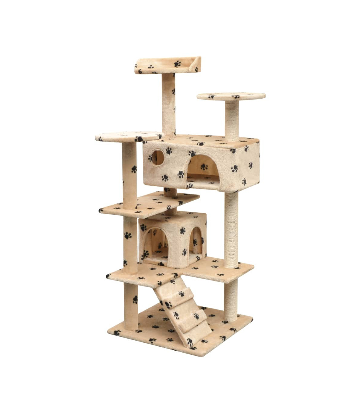 Give your feline friends a taste of luxury with our feature-packed cat tree! This multi-storey cats' play centre, with a solid frame covered in soft, comfortable plush, is the perfect retreat for your cats to scratch, climb, perch, hide, and rest. Your feline friends can sharpen their claws on the scratching posts wrapped in sisal rope, which provides a healthy outlet for their scratching instincts. They will also enjoy chasing after each other while jumping up and down this fun play centre. When they've had enough playtime fun, your little friends will love resting on the upper platforms where they have a better view. They can also hide in the cosy houses to take a nap. With all these fun features, this cat tree will become your furry friends' favourite hangout spot!