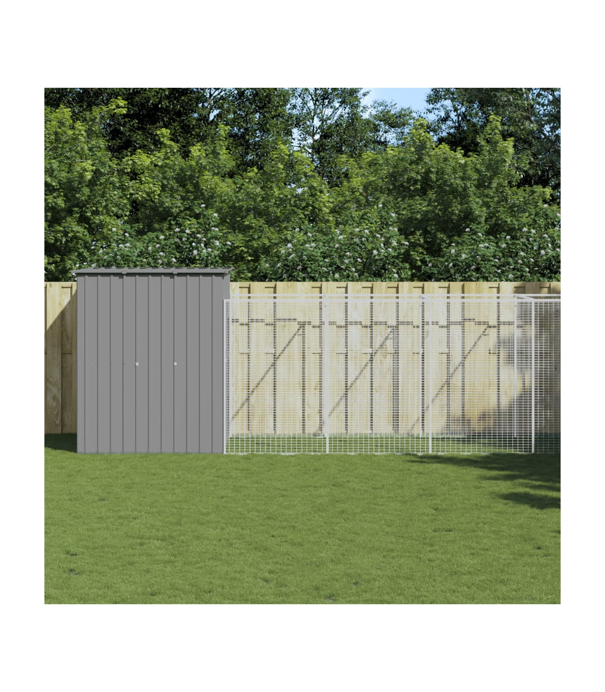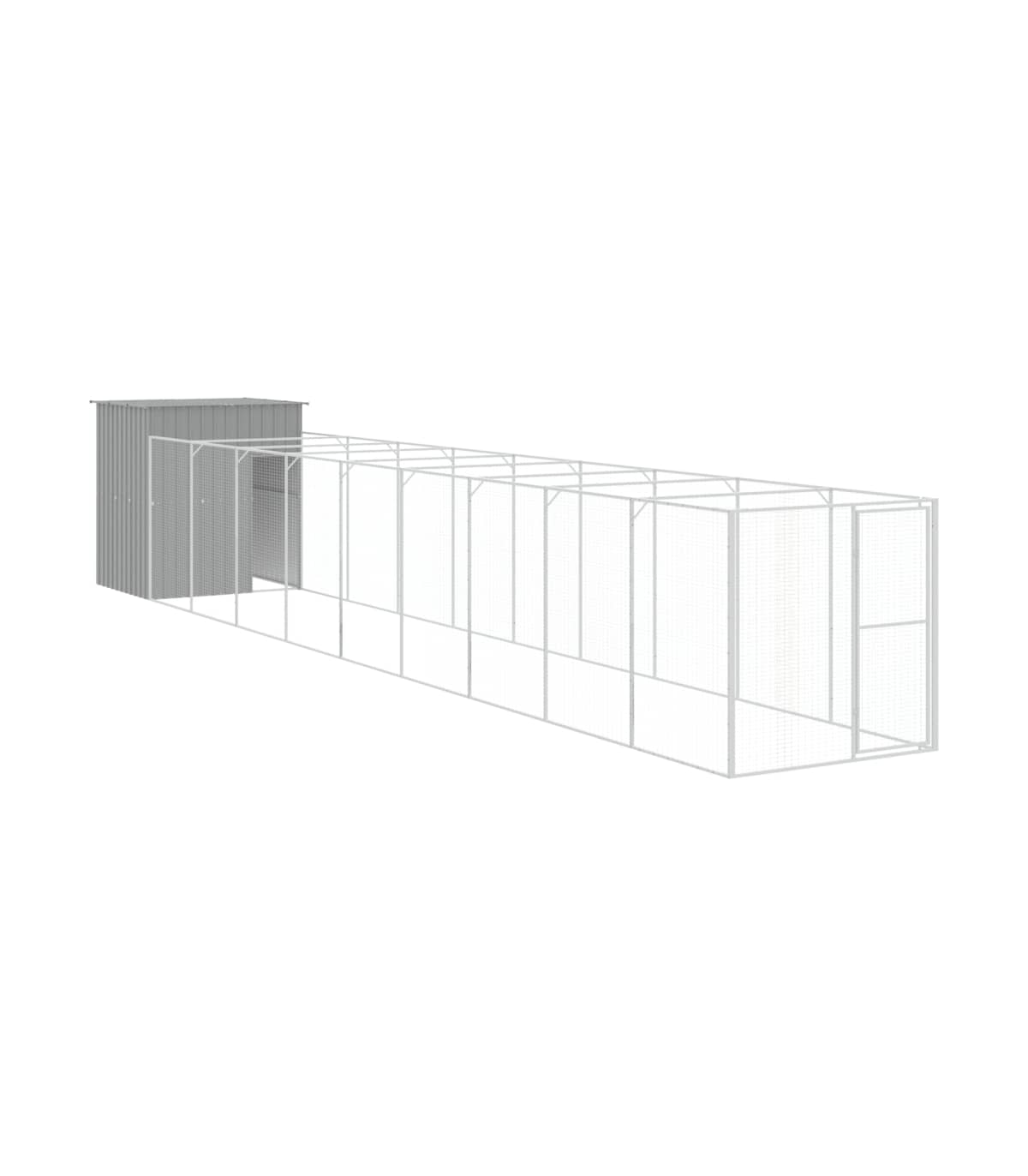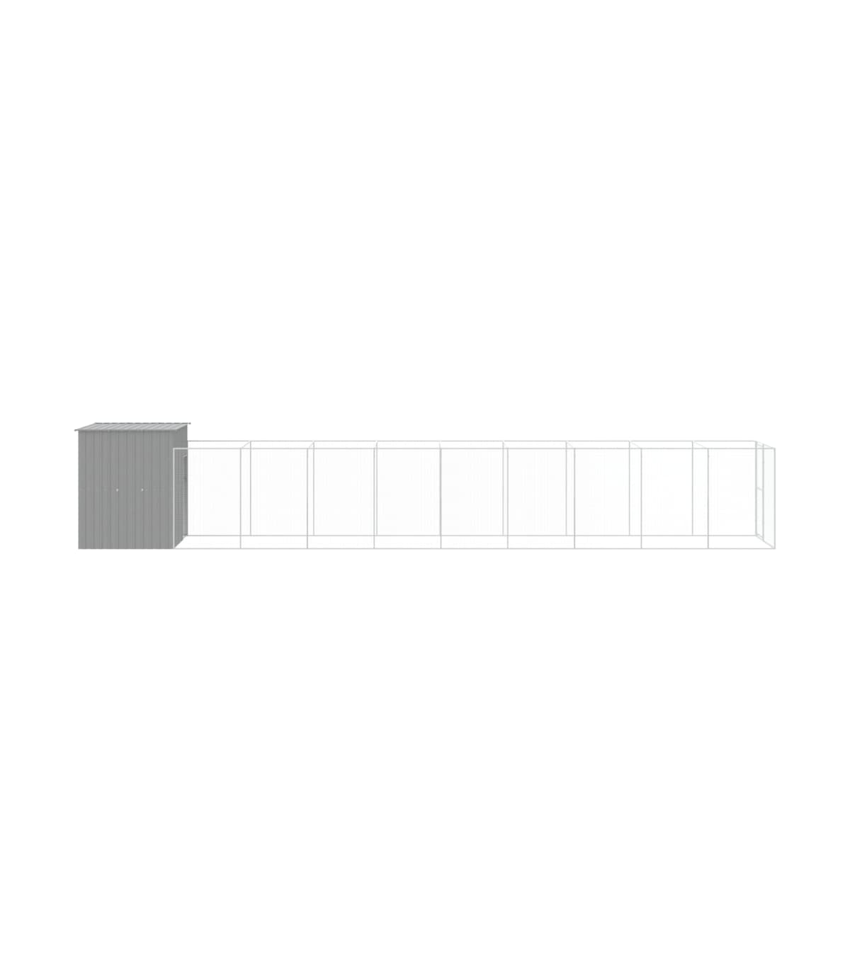 vidaXL Dog House with Run Light Grey 165x1067x181 cm Galvanised Steel