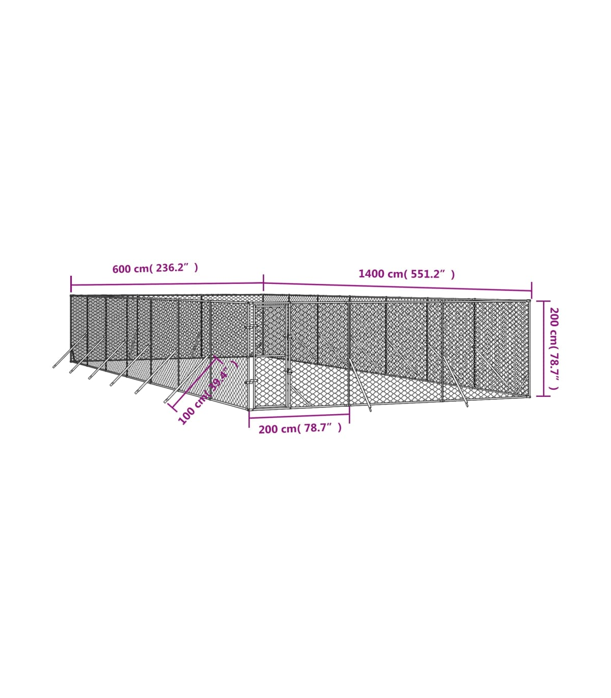 vidaXL Outdoor Dog Kennel Silver 6x14x2 m Galvanised Steel