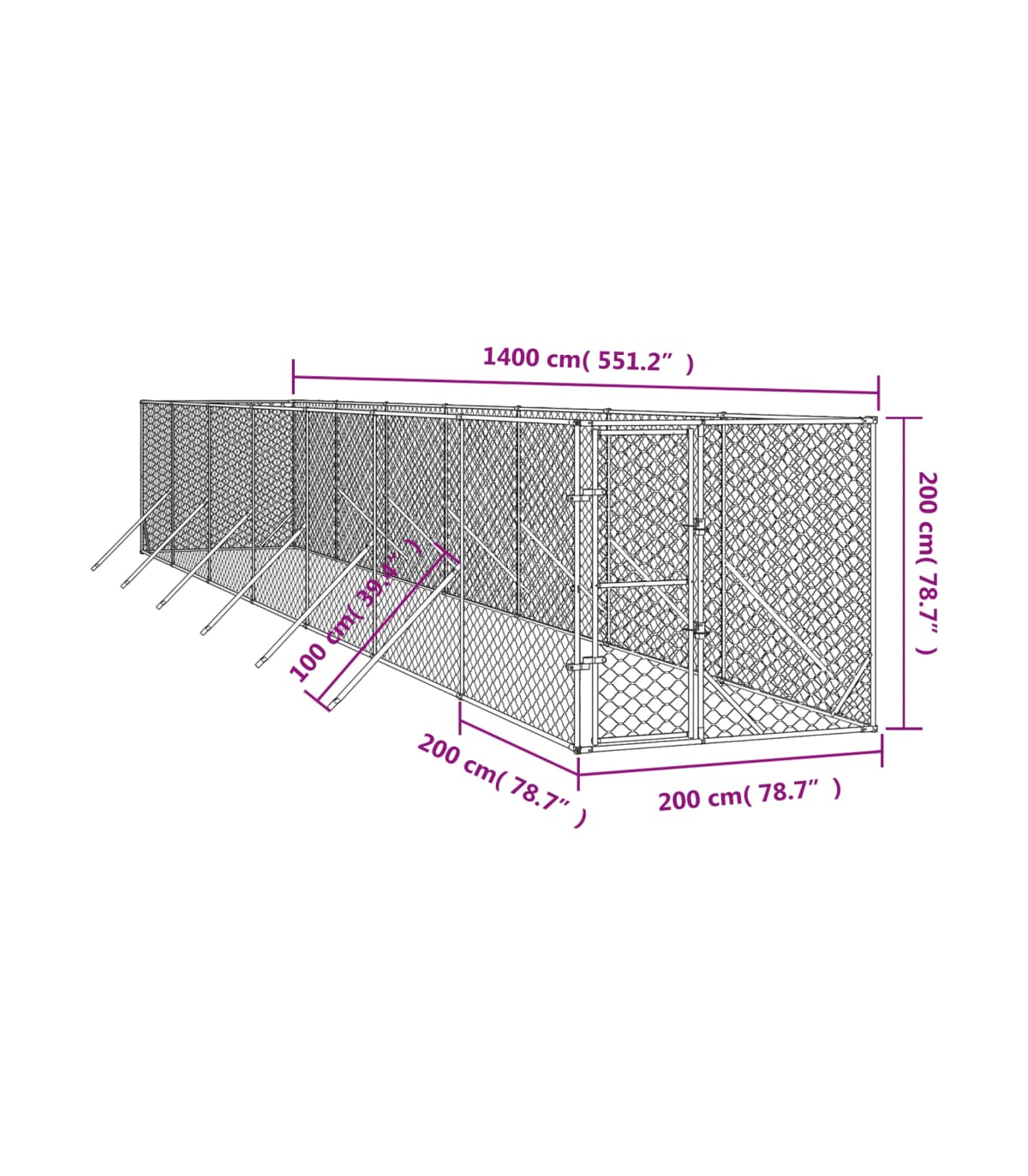 vidaXL Outdoor Dog Kennel Silver 2x14x2 m Galvanised Steel