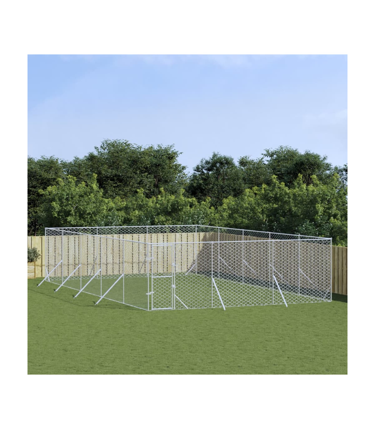 This practical and spacious outdoor dog kennel is a perfect choice as an outdoor enclosure for keeping your animals safe and comfortable. Versatile kennel: The dog kennel features a spacious space that allows your dogs, chickens, rabbits, ducks, and other small animals to play, exercise, train, or just rest.Sturdy construction: Made of heavy-duty galvanised steel, the dog cage is sturdy and durable.Lockable door: The outside dog kennel has a lockable door to prevent your small animals from predators and other hazards while outdoors.Mesh design: The mesh design of the dog run kennel ensures a dry and ventilative living condition.