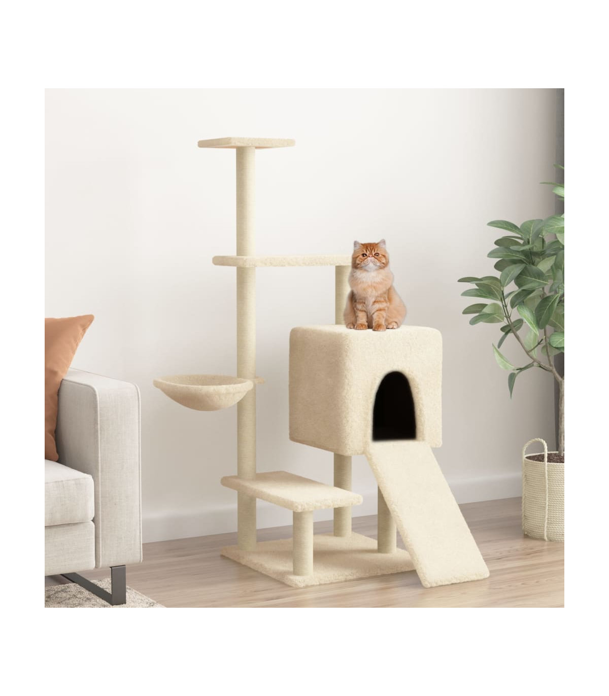 - Material: Engineered wood, plush, sisal