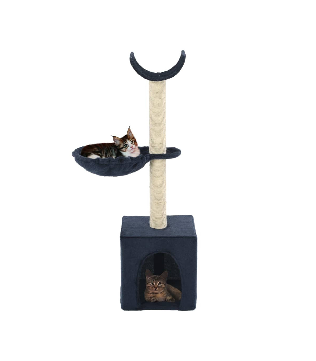 With this high-quality cat tree, your cats can scratch, perch, hide, climb and relax to their heart's content. It will suit any decor. The cat scratching tree will also give your cats the chance to stretch and exercise, especially in the cold winter months when they are stuck indoors. The plush, carpeted surface is highly comfortable, and the scratch posts wrapped in sisal rope satisfy cats' clawing instinct. Your feline friends can also hide in the cosy houses to take a nap, or take a load off on the comfy baskets. The base is sturdy and stable. The cat tree is easy to assemble.