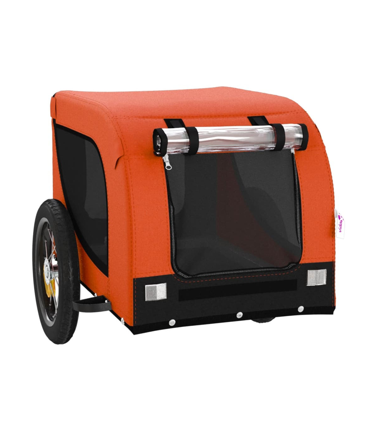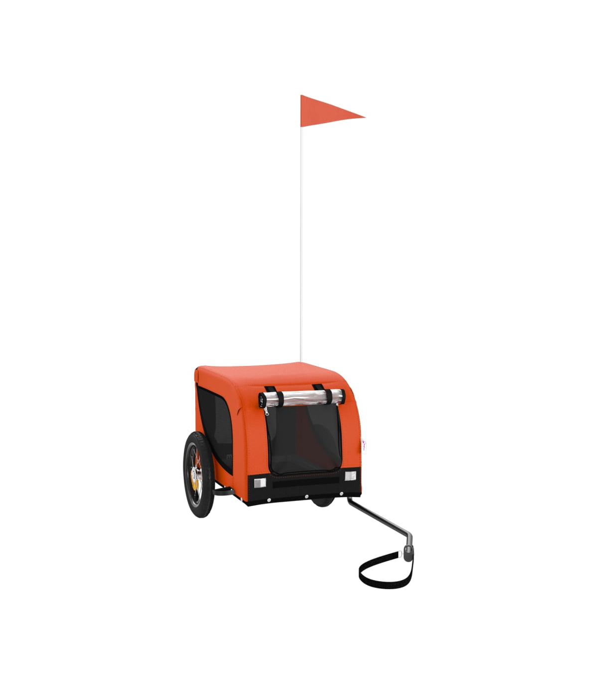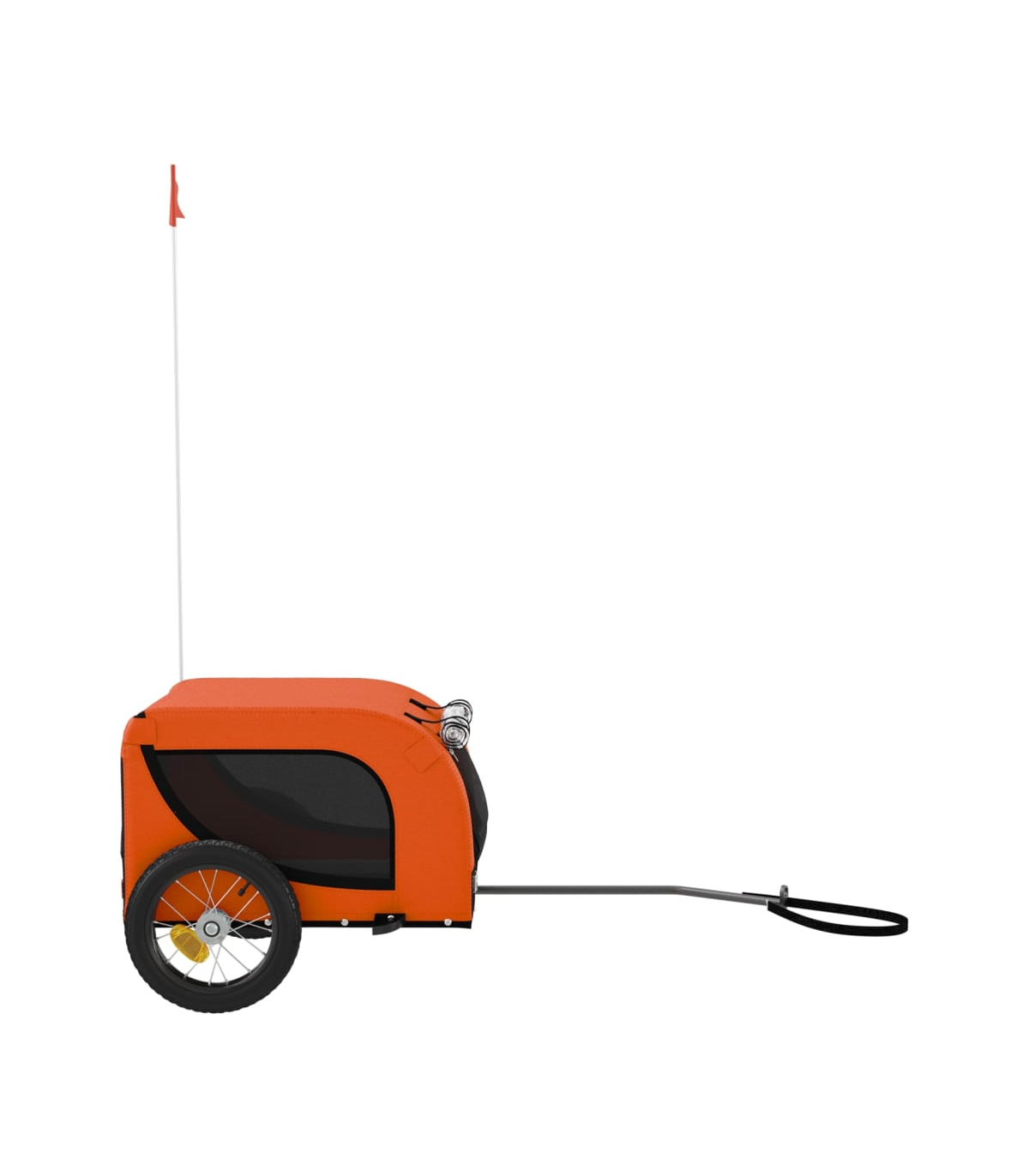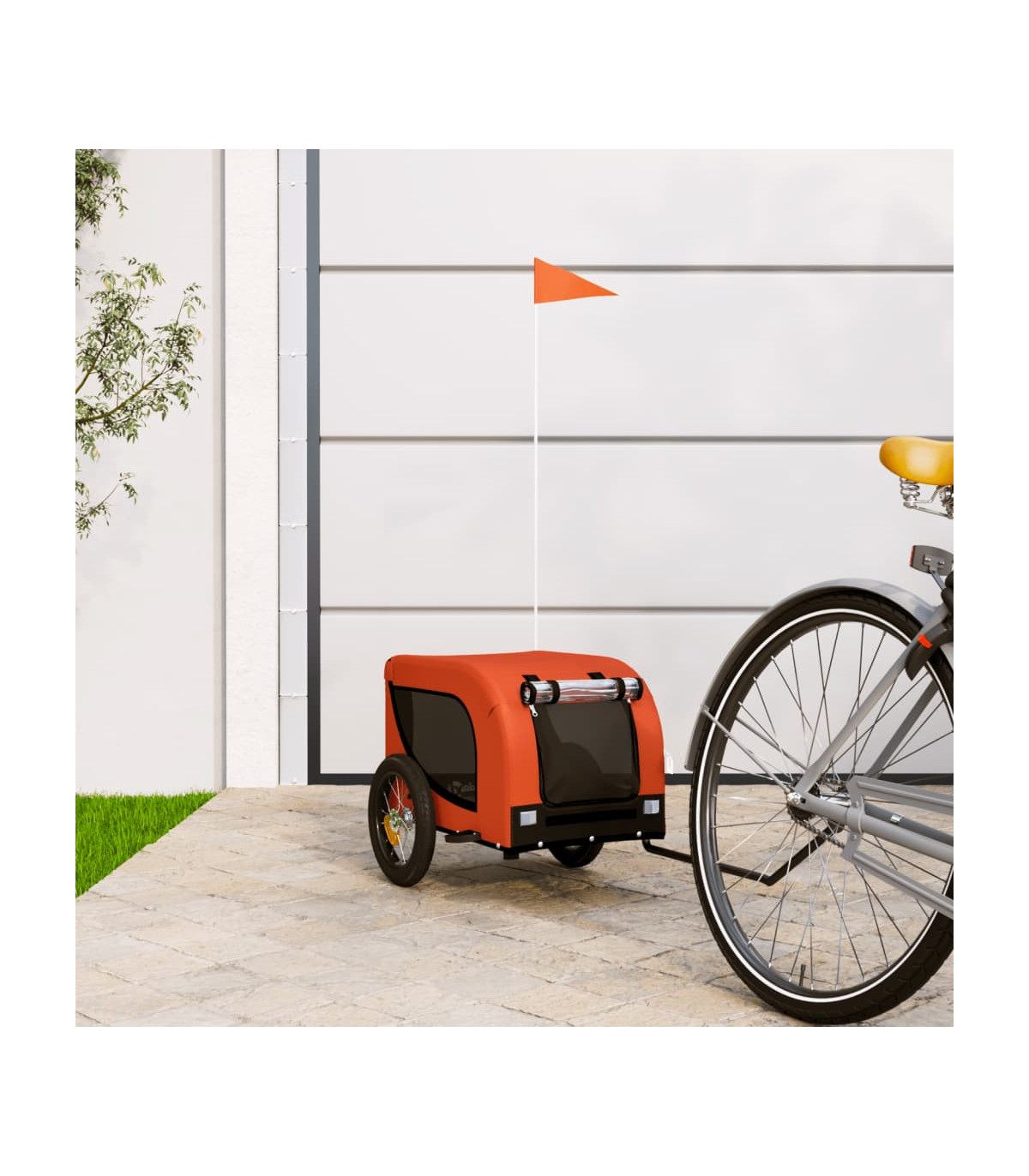 This handy pet bike trailer is a great addition to your pet's day out, allowing your pet to enjoy a more comfortable journey. Durable frame: Iron is a strong and hard material. It's a solid favourite in industrial and furniture construction. With a frame made of iron, the bicycle trailer is sturdy and reliable, giving you peace of mind when riding on the road.Comfortable bike trailer: This bike cargo trailer is made from oxford fabric and features the PVC rain window to keep your pet out of the drizzle.Convenient design: Zippered front and back doors make it easy to get in and out, and the mesh windows allow air to circulate inside and keep your pet cool during the journey.Safe riding: The bicycle cargo trailer has two large wheels that allow for smooth and safe travel on various grounds and the reflectors on the outside provide visibility in the dark, plus the flag can increase traffic safety.Wide applications: Perfect for carrying small dogs and pets, this pet bike trailer can be attached to your bike easily. It can also be used to carry groceries, camping equipment, sporting goods, or whatever you need to take with you!