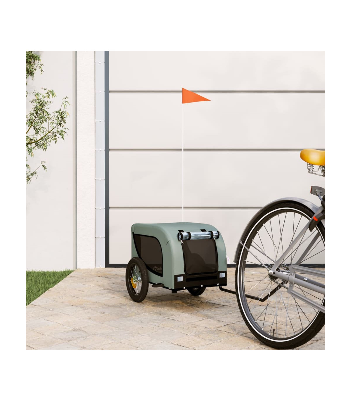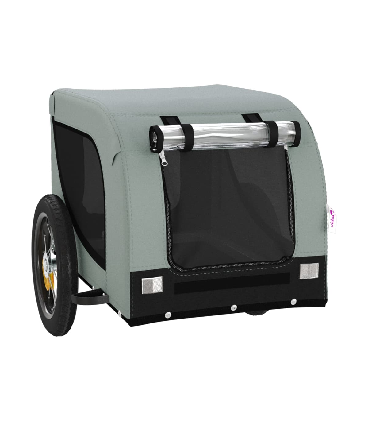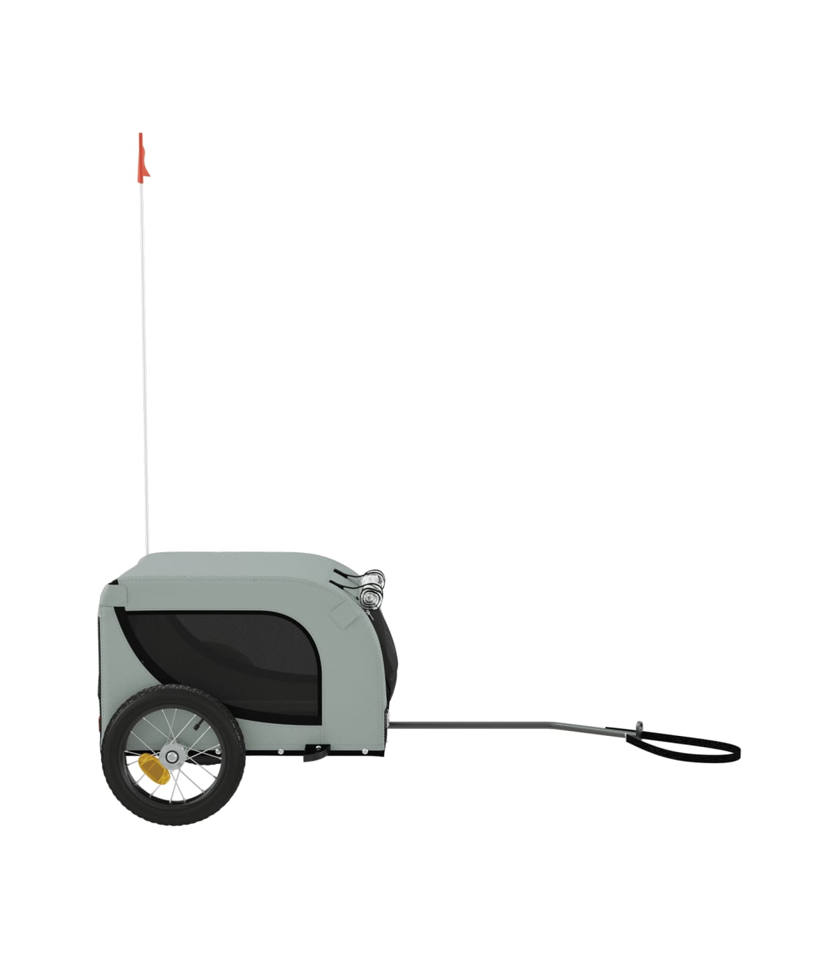 This handy pet bike trailer is a great addition to your pet's day out, allowing your pet to enjoy a more comfortable journey. Durable frame: Iron is a strong and hard material. It's a solid favourite in industrial and furniture construction. With a frame made of iron, the bicycle trailer is sturdy and reliable, giving you peace of mind when riding on the road.Comfortable bike trailer: This bike cargo trailer is made from oxford fabric and features the PVC rain window to keep your pet out of the drizzle.Convenient design: Zippered front and back doors make it easy to get in and out, and the mesh windows allow air to circulate inside and keep your pet cool during the journey.Safe riding: The bicycle cargo trailer has two large wheels that allow for smooth and safe travel on various grounds and the reflectors on the outside provide visibility in the dark, plus the flag can increase traffic safety.Wide applications: Perfect for carrying small dogs and pets, this pet bike trailer can be attached to your bike easily. It can also be used to carry groceries, camping equipment, sporting goods, or whatever you need to take with you!