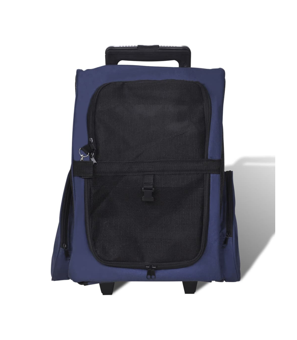 This pet trolley is lightweight and ventilated. It is designed for small pets like cats, dogs, rabbits, etc. Featuring an all-in-one design, this collapsible trolley can also be used as a pet backpack and a pet hand bag. It will really be a perfect choice for pet owners. This pet trolley is light and well-ventilated, with strong mesh windows on three sides, which makes it a comfortable shelter for your furry friend. The zippered doors can be rolled up or down, which makes it easy for your pet to get in and out. This pet trolley also boasts 2 zippered storage pockets for carrying small items like toys, treats, etc. Made of high-quality metal and fabric, this pet trolley is very durable.