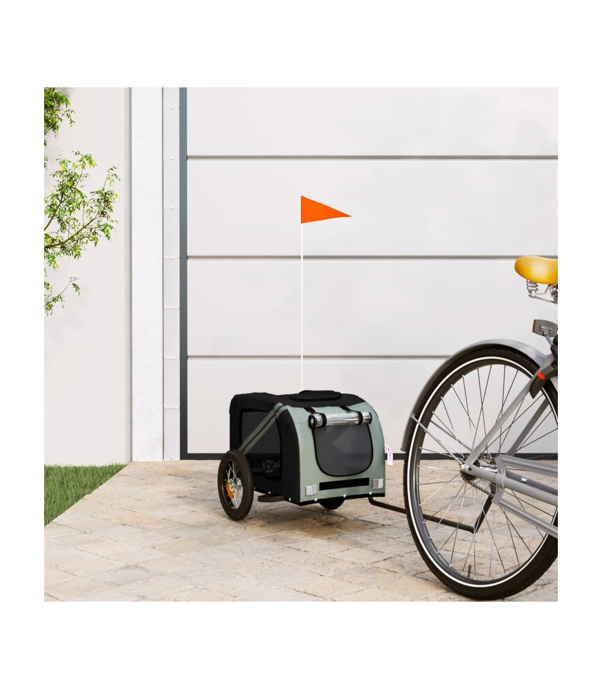 vidaXL Pet Bike Trailer Grey and Black Oxford Fabric and Iron