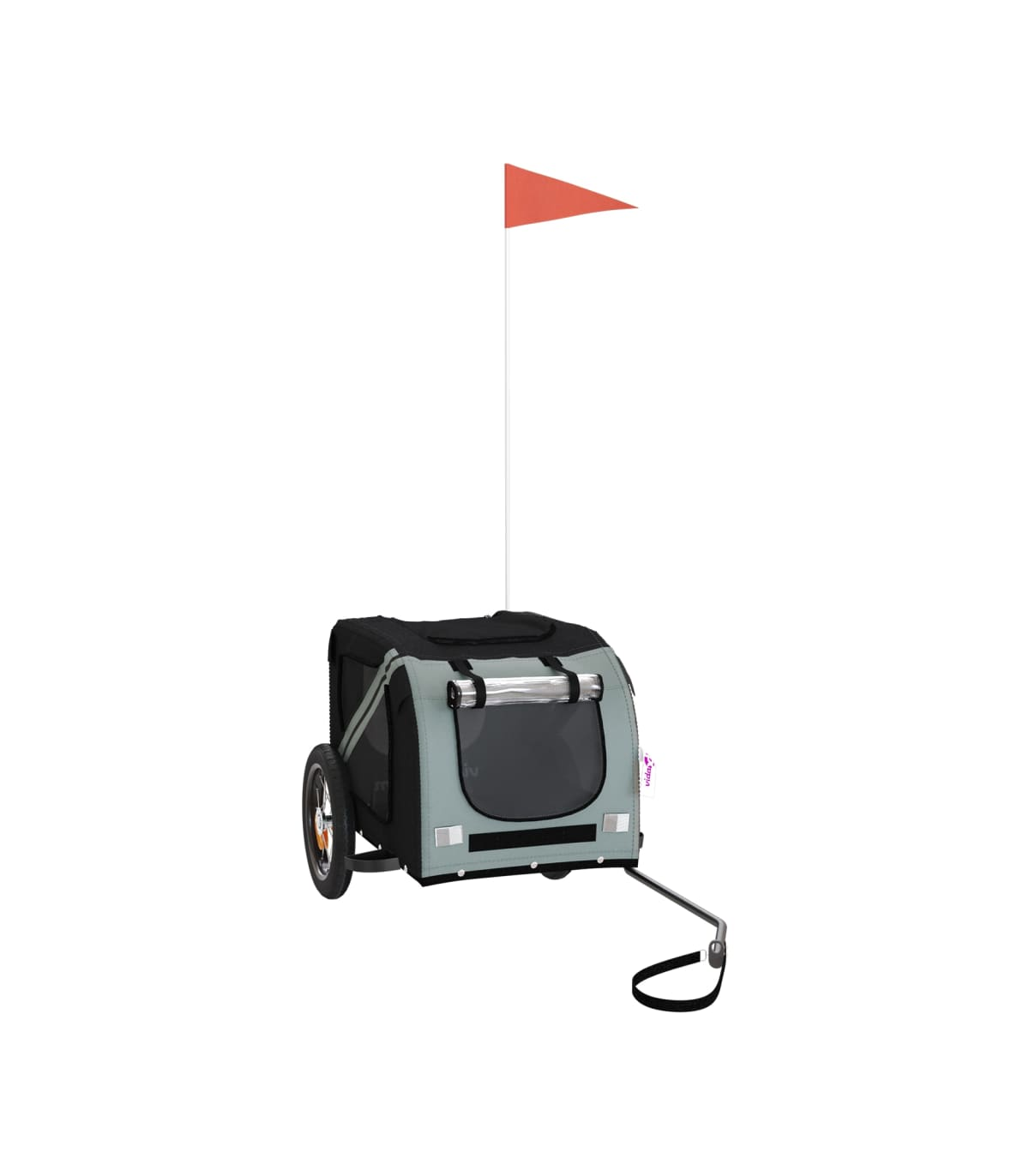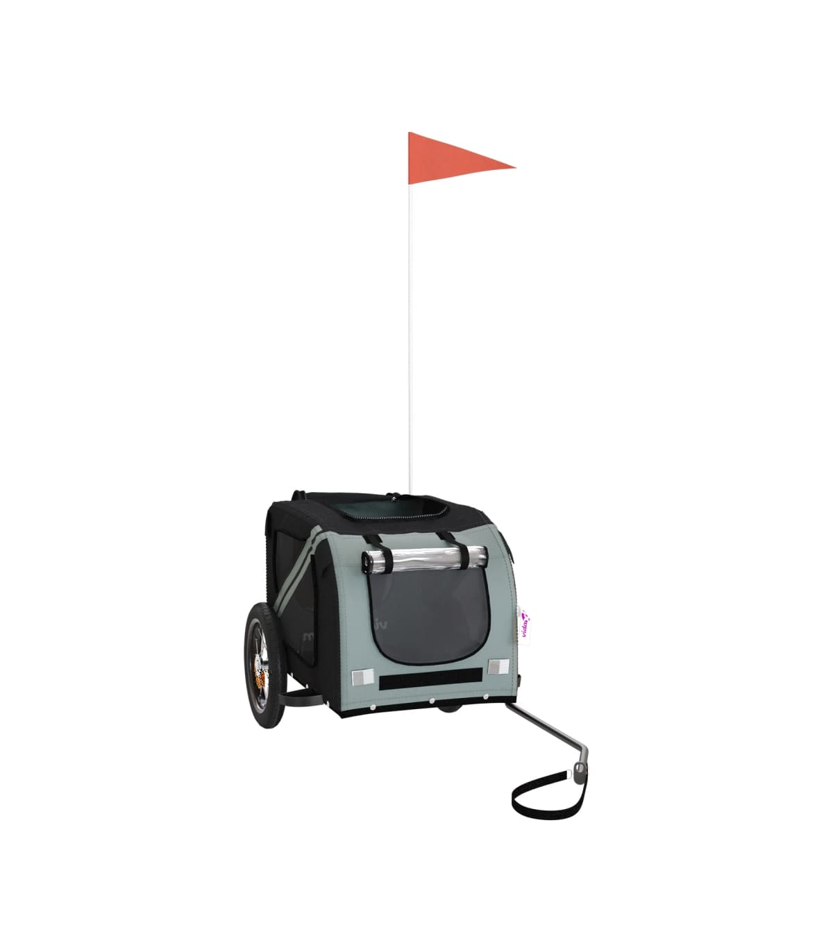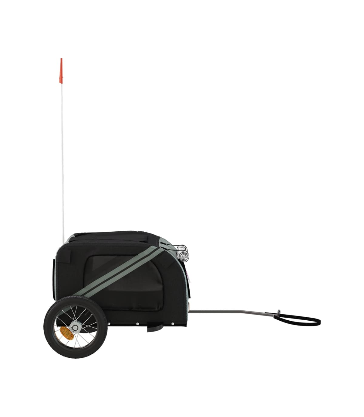 This handy pet bike trailer is a great addition to your pet's day out, allowing your pet to enjoy a more comfortable journey. Durable frame: Iron is a strong and hard material. It's a solid favourite in industrial and furniture construction. With a frame made of iron, the bicycle trailer is sturdy and reliable, giving you peace of mind when riding on the road.Comfortable bike trailer: This bike cargo trailer is made from oxford fabric and features the PVC cover to keep your pet out of the drizzle. In addition, there is a black load-bearing board at the bottom for comfortable space.Convenient design: Zippered front and back doors make it easy to get in and out, and the mesh windows and a zipped roof allow air to circulate inside and keep your pet cool during the journey.Safe riding: The bicycle cargo trailer has two large wheels that allow for smooth and safe travel on various grounds and the reflectors on the outside provide visibility in the dark, plus the flag can increase traffic safety.Wide applications: Perfect for carrying small dogs and pets, this pet bike trailer can be attached to your bike easily. It can also be used to carry groceries, camping equipment, sporting goods, or whatever you need to take with you!