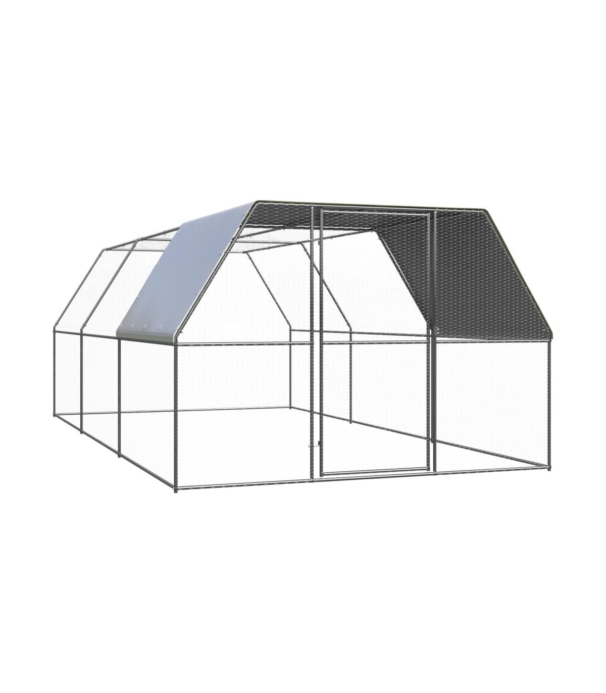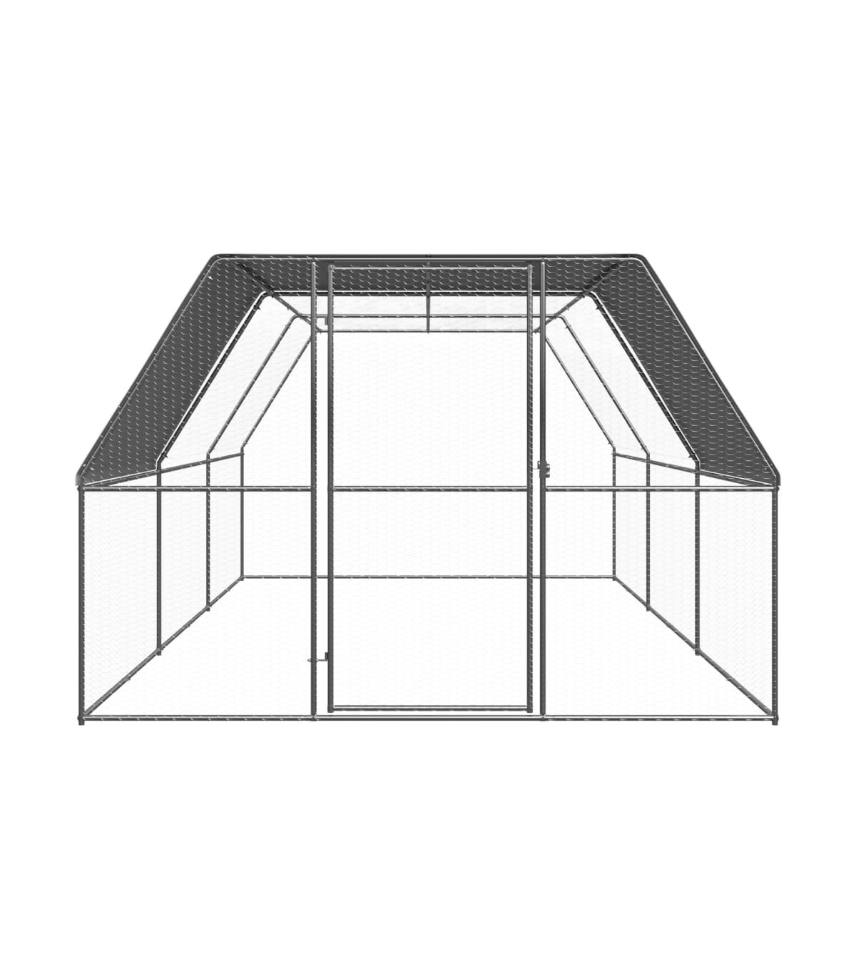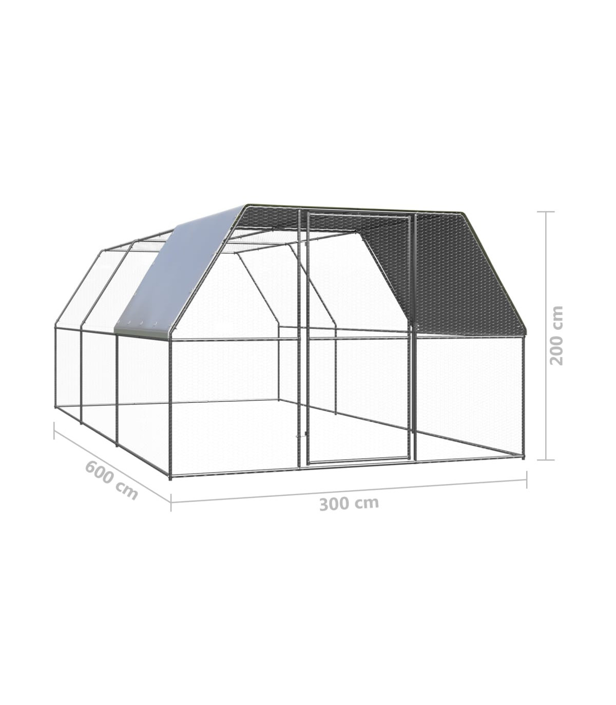 This practical and spacious chicken cage is a perfect choice as an outdoor enclosure for your chickens, hens, ducks and other small animals and keeps them comfortable. It is also suitable for large birds and can be used as an aviary. This chicken run is made of galvanised steel. It has a polyethylene roof that is water-resistant and UV-resistant. The gate is equipped with a lock, which ensures extra security and safety for your small animals.