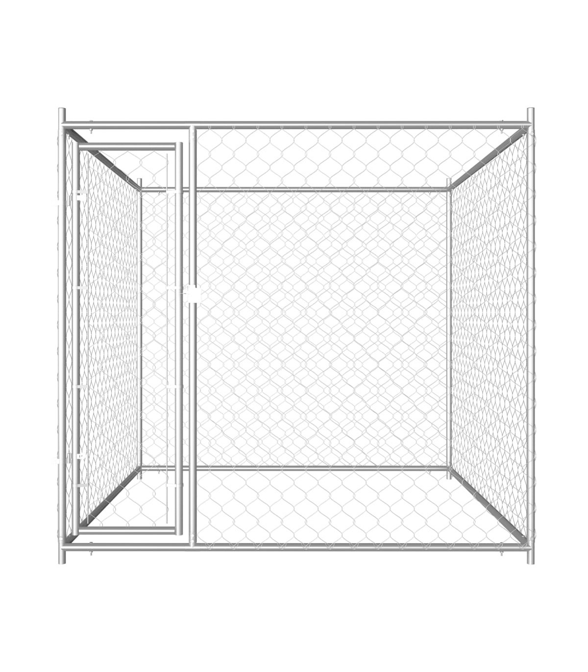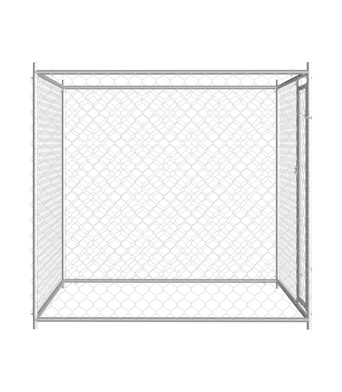 This versatile dog kennel has multiple uses: playing, exercising, training, or simply keeping your dogs safe. It will be the perfect play paradise for your furry friends! This large dog kennel provides ample exercise space while the chain link mesh all around helps prevent mischief and unexpected accidents, while enabling ventilation. Thanks to the sturdy and heavy-duty galvanised steel construction, this dog kennel is durable and built to last. The included top canopy, made of 100% polyethylene, is fire-resistant and UV protected, providing protection from sun, rain, snow and other weather conditions. The hinged door ensures extra security and safety for your dogs thanks to the lockable latch system. Assembly is easy.