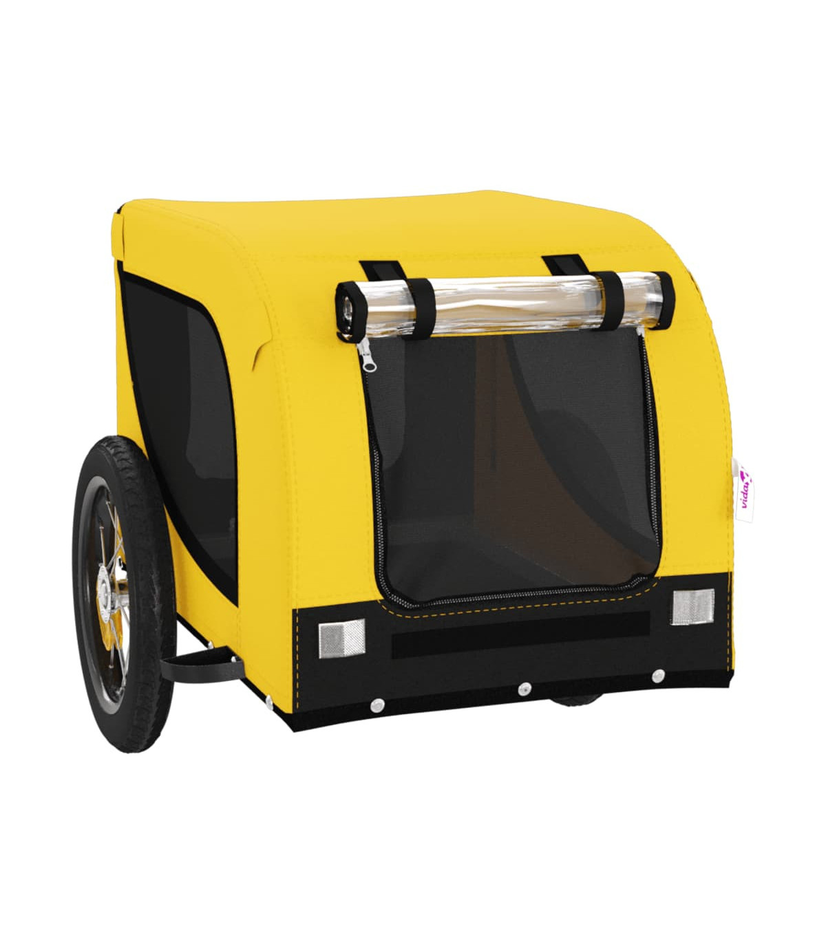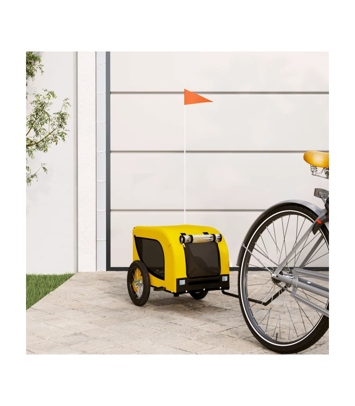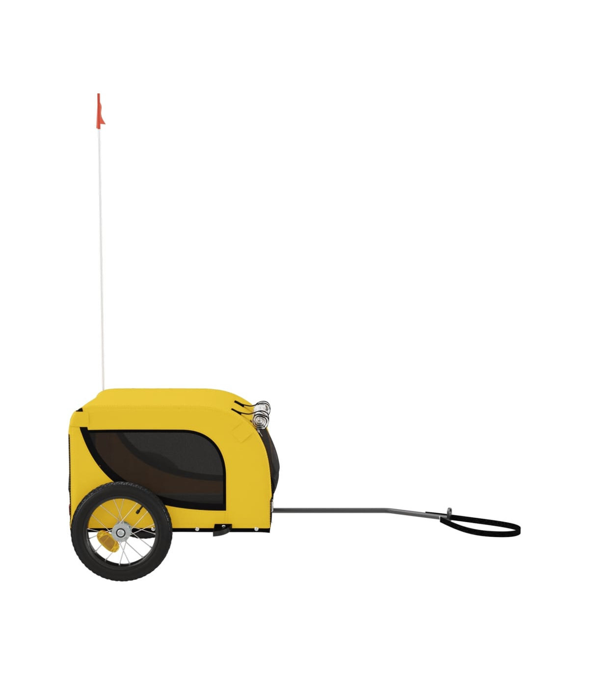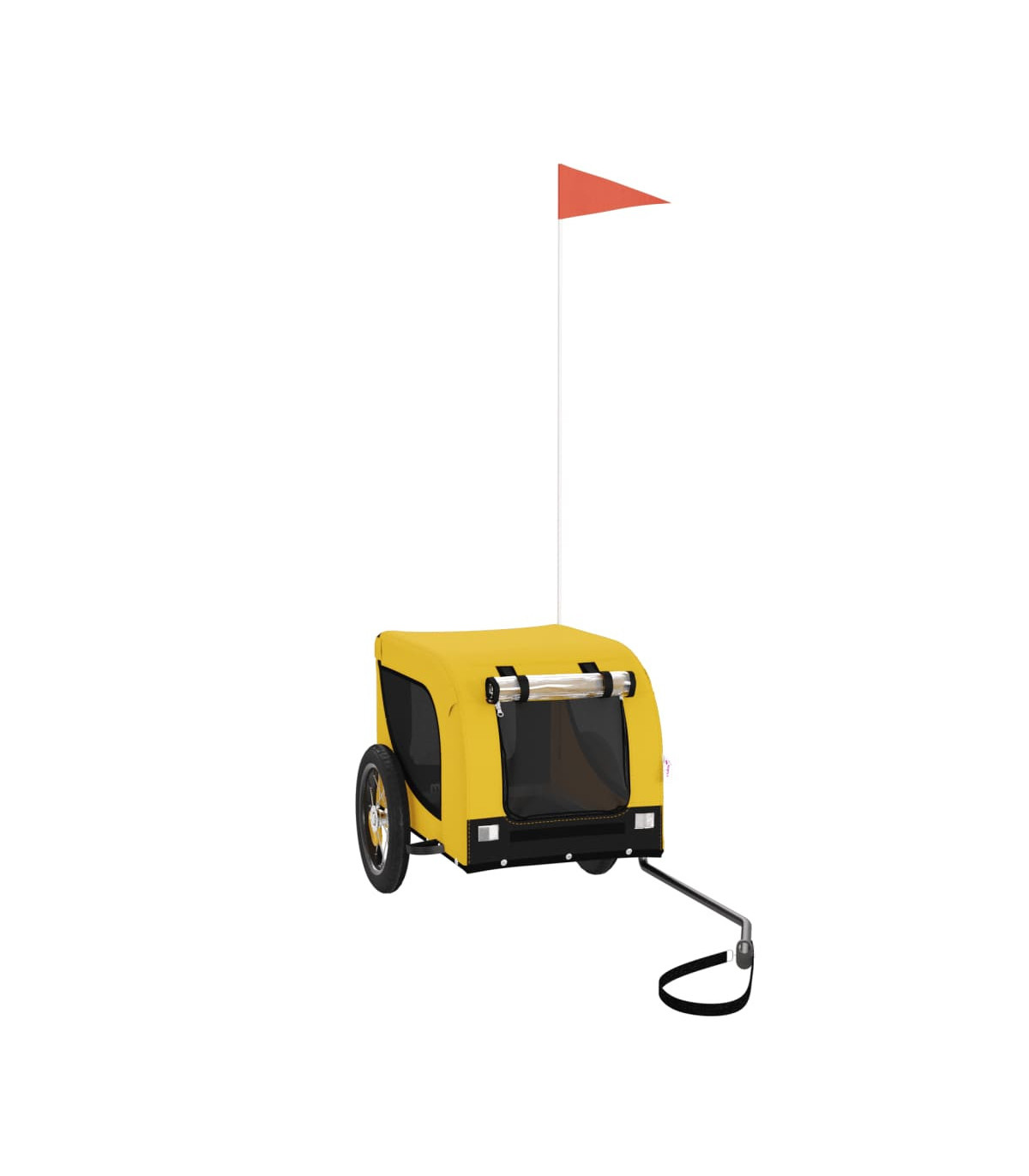 This handy pet bike trailer is a great addition to your pet's day out, allowing your pet to enjoy a more comfortable journey. Durable frame: Iron is a strong and hard material. It's a solid favourite in industrial and furniture construction. With a frame made of iron, the bicycle trailer is sturdy and reliable, giving you peace of mind when riding on the road.Comfortable bike trailer: This bike cargo trailer is made from oxford fabric and features the PVC rain window to keep your pet out of the drizzle.Convenient design: Zippered front and back doors make it easy to get in and out, and the mesh windows allow air to circulate inside and keep your pet cool during the journey.Safe riding: The bicycle cargo trailer has two large wheels that allow for smooth and safe travel on various grounds and the reflectors on the outside provide visibility in the dark, plus the flag can increase traffic safety.Wide applications: Perfect for carrying small dogs and pets, this pet bike trailer can be attached to your bike easily. It can also be used to carry groceries, camping equipment, sporting goods, or whatever you need to take with you!
