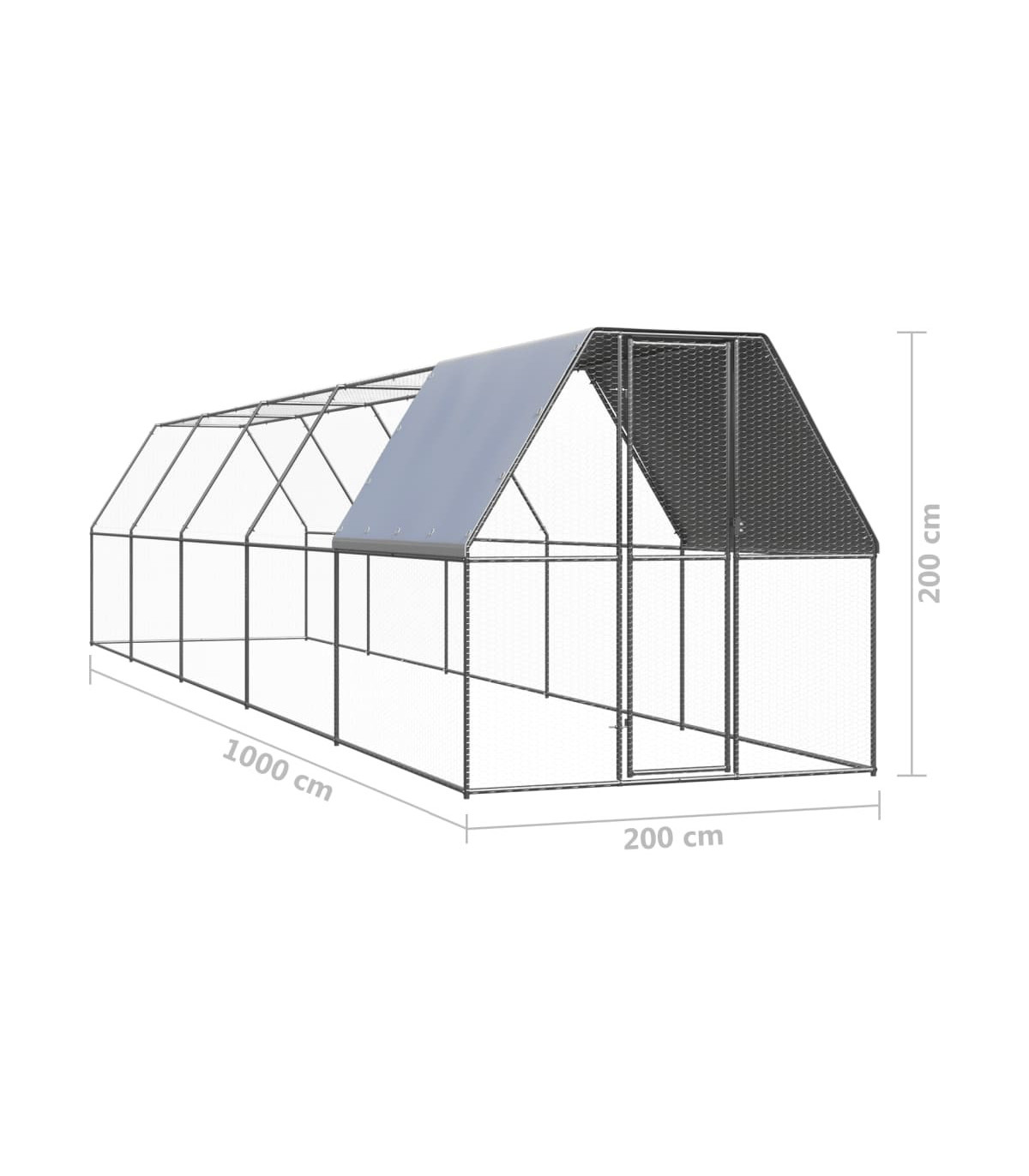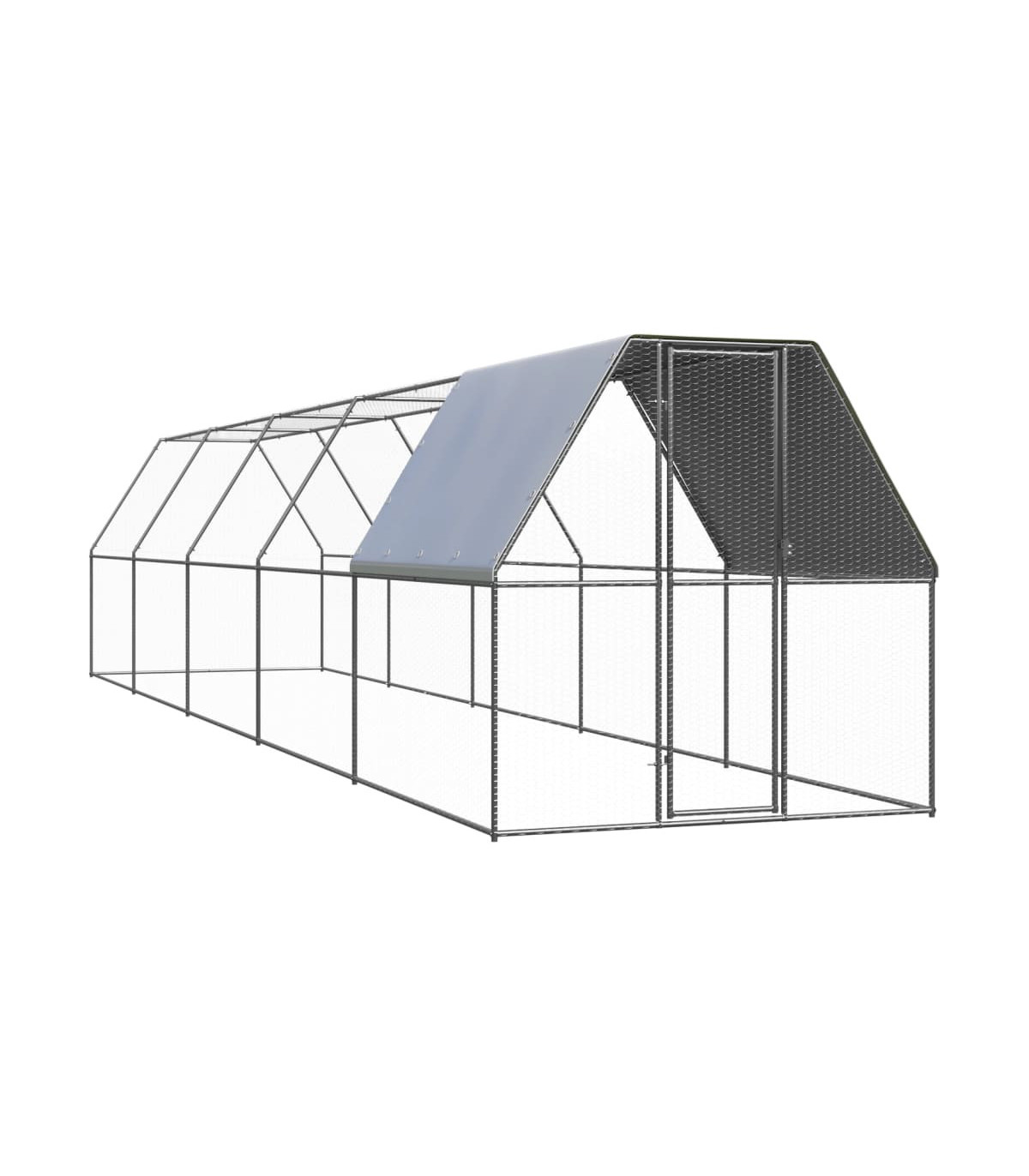 This practical and spacious chicken cage is a perfect choice as an outdoor enclosure for your chickens, hens, ducks and other small animals and keeps them comfortable. It is also suitable for large birds and can be used as an aviary. This chicken run is made of galvanised steel. It has a polyethylene roof that is water-resistant and UV-resistant. The gate is equipped with a lock, which ensures extra security and safety for your small animals.